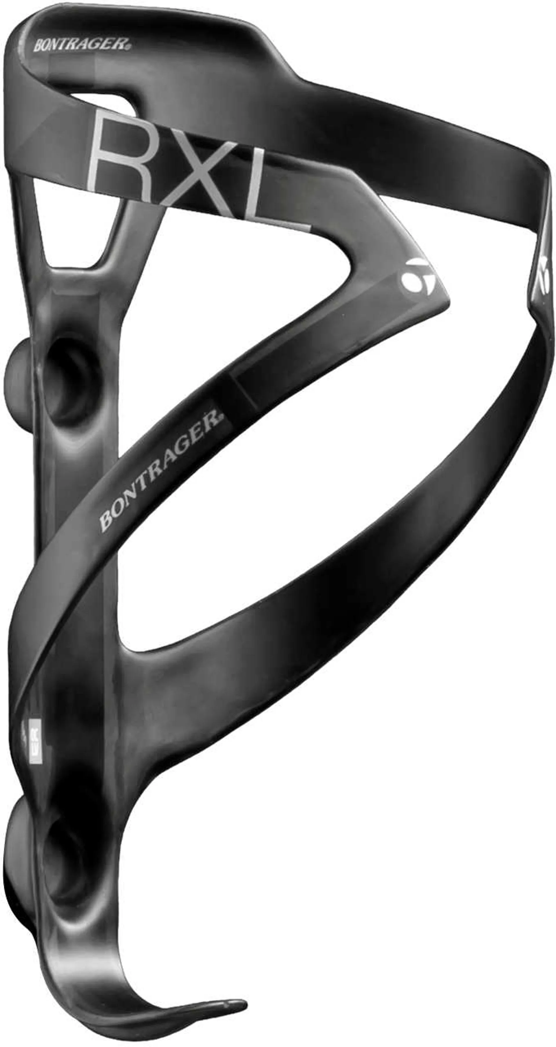 The Bontrager RXL Carbon Bottle Cage. The full carbon construction of the RXL Carbon Cage provides climbers with a lightweight solution while the robust design securely holds bottles over train tracks, rough roads and rocky terrain. Ideal for both road and mountain bikes.