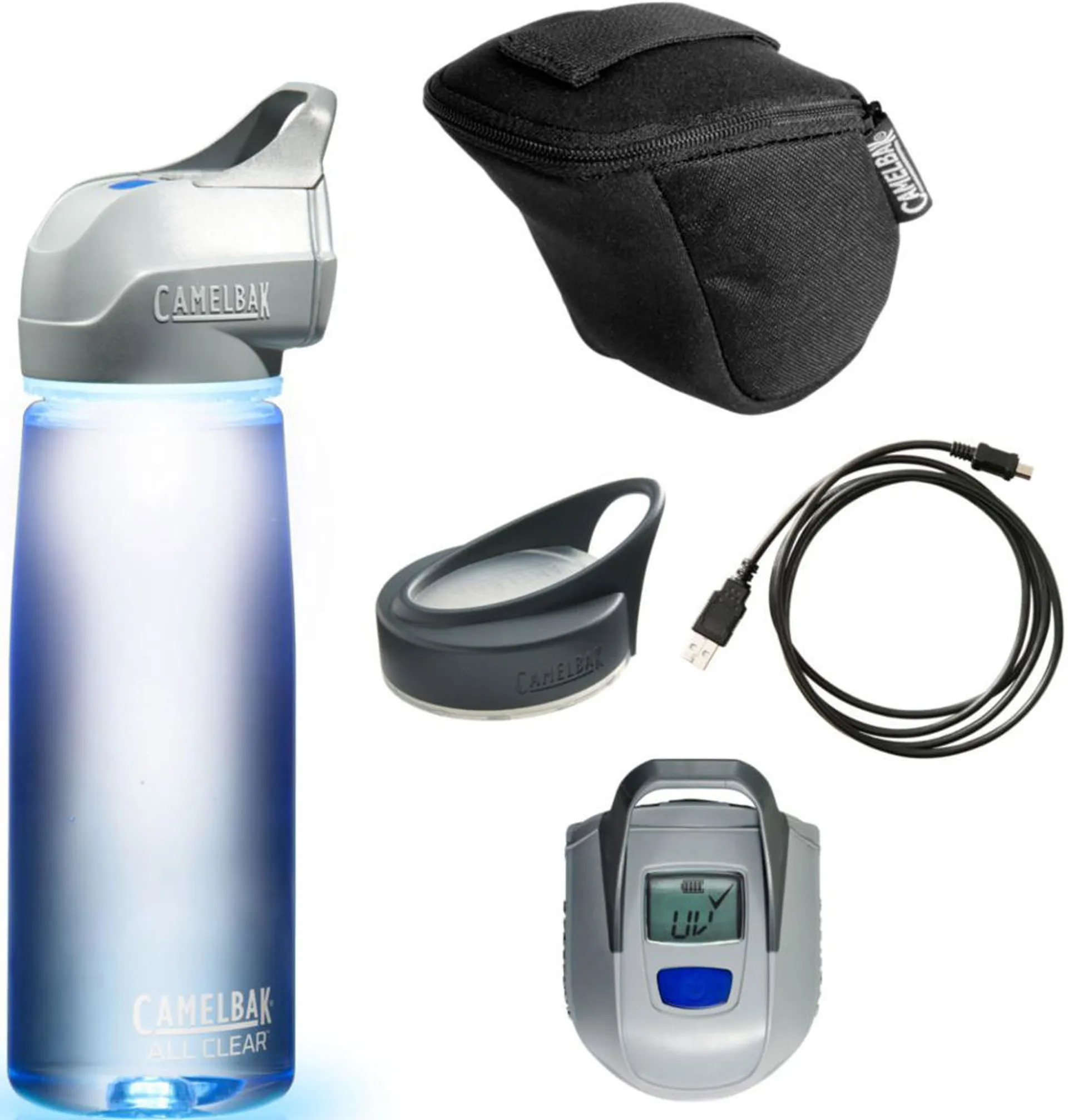 The Camelbak All Clear is a brand new innovative bottle that can turn any clear water into drinkable water in under a minute! It gives you reliable purification, whatever the destination. CamelBak® All Clear™ utilizes proven UV technology to effectively neutralize microbiological contaminants to EPA standards. With a built-in LCD to confirm your results, purification has never been easier.