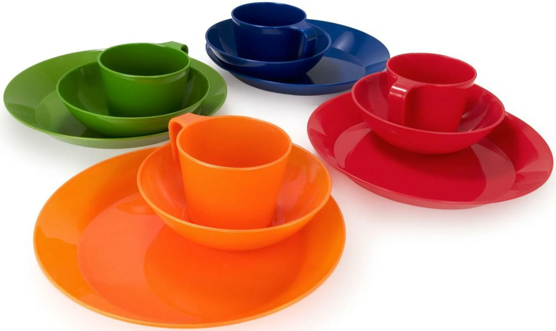 • Includes: 4 x 6" bowls, 4 x 9.5" plates, 4 x 355ml cups, mesh bags