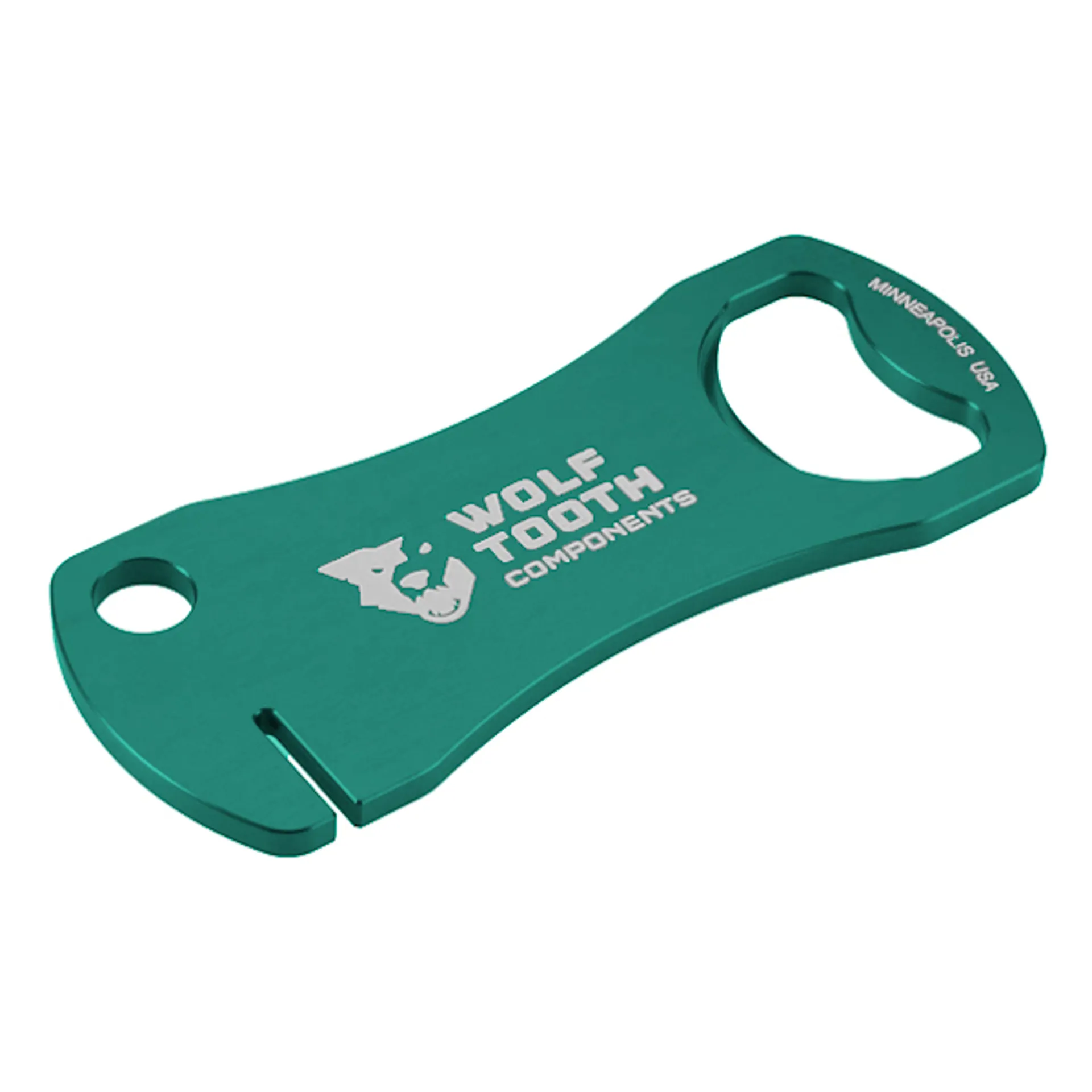 The Wolf Tooth Bottle Opener grips the bottle cap like a wolf on prey and pops it right off every time! We even added a slot for truing your brake rotors and a large hole for a keychain or carabiner. This is not just some generic opener we selected from a catalog – this is a precision engineered tool that you will want to have with you all the time. It's weight is a mere 32g so you can carry it with you wherever you go (even on the bike).