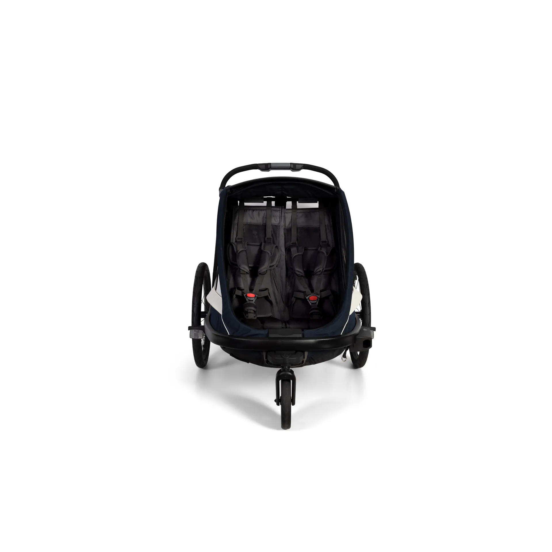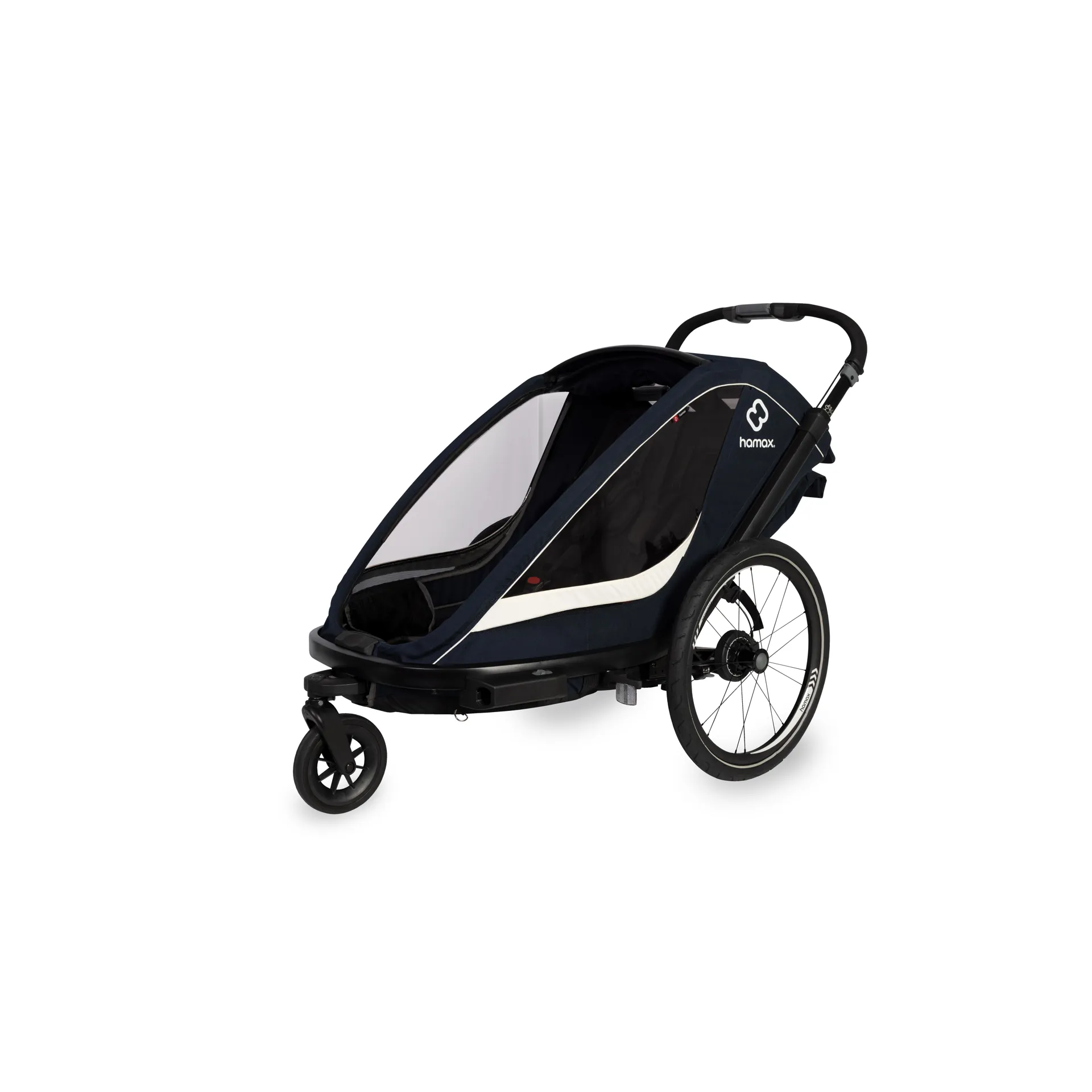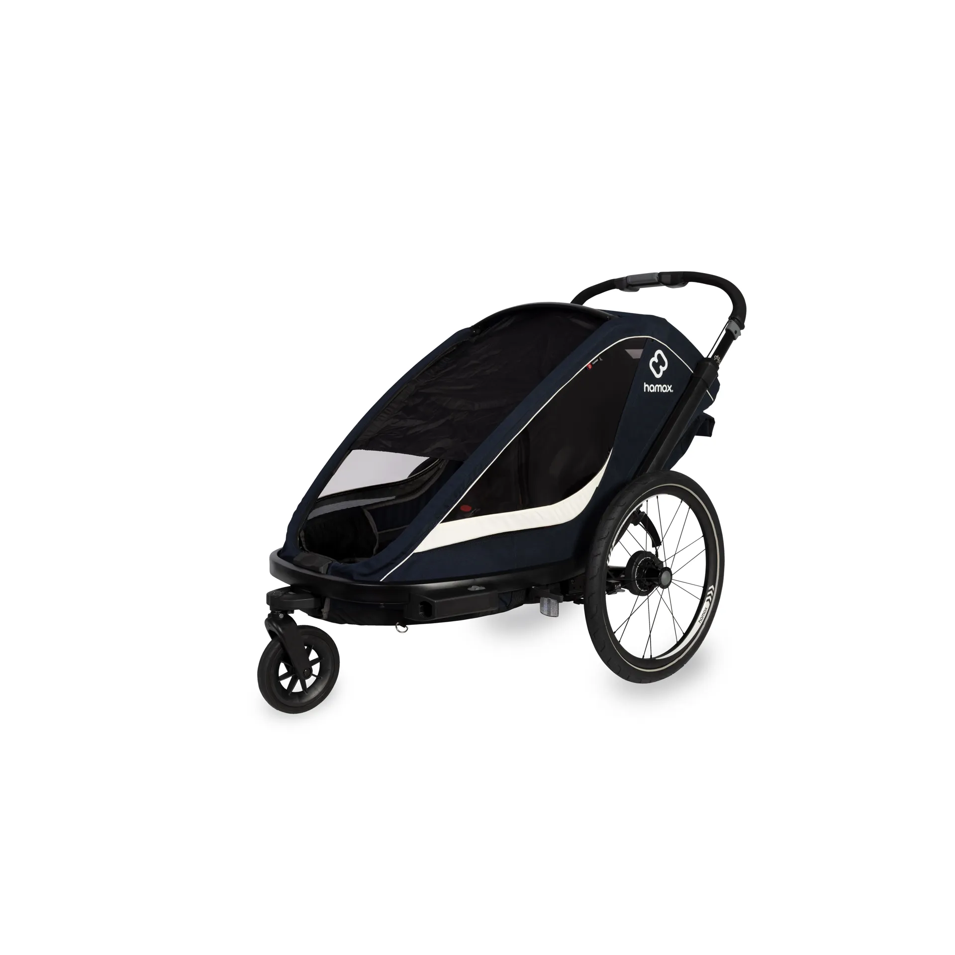 This newcomer offers a combination of urban elegance and a sporty appearance. Smart technical solutions demonstrate excellence in user friendliness, safety and comfort. This multifunctional child carrier makes it even easier to choose a healthy lifestyle with easy access to fun adventures and daily routines in both city centers, parks and sporting trailsBags are attached to the rear of the trailer, they are detachable, so that you can bring them into stores, coffee shops or similar - or just keep the extra diaper and other necessities in a confined space.