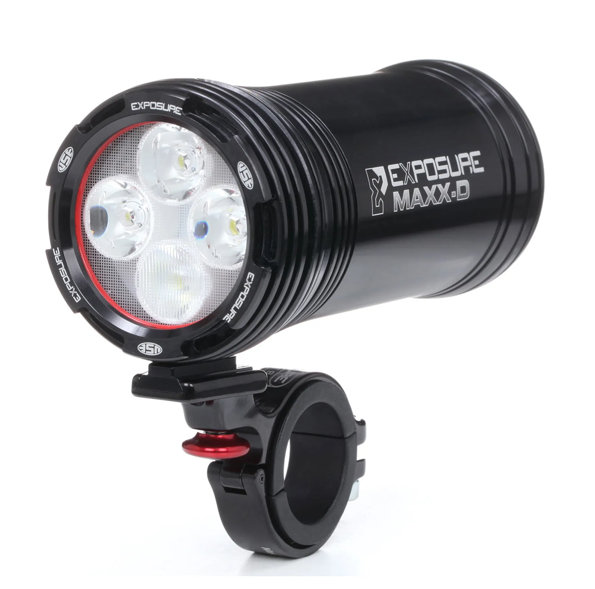 Exposure’s CFD (Cable Free Design) has always been a key selling point of its lights. It means all the electronics and the batteries are self-contained, so you wont be encumbered by an external battery pack wired to your bike or body. The lamp is housed in an aluminum can, and attached to the handlebar with a quick-release aluminum band clamp. And, at 308 grams, the MaXx-D Mk8 is light enough that it’s not going to impact steering.