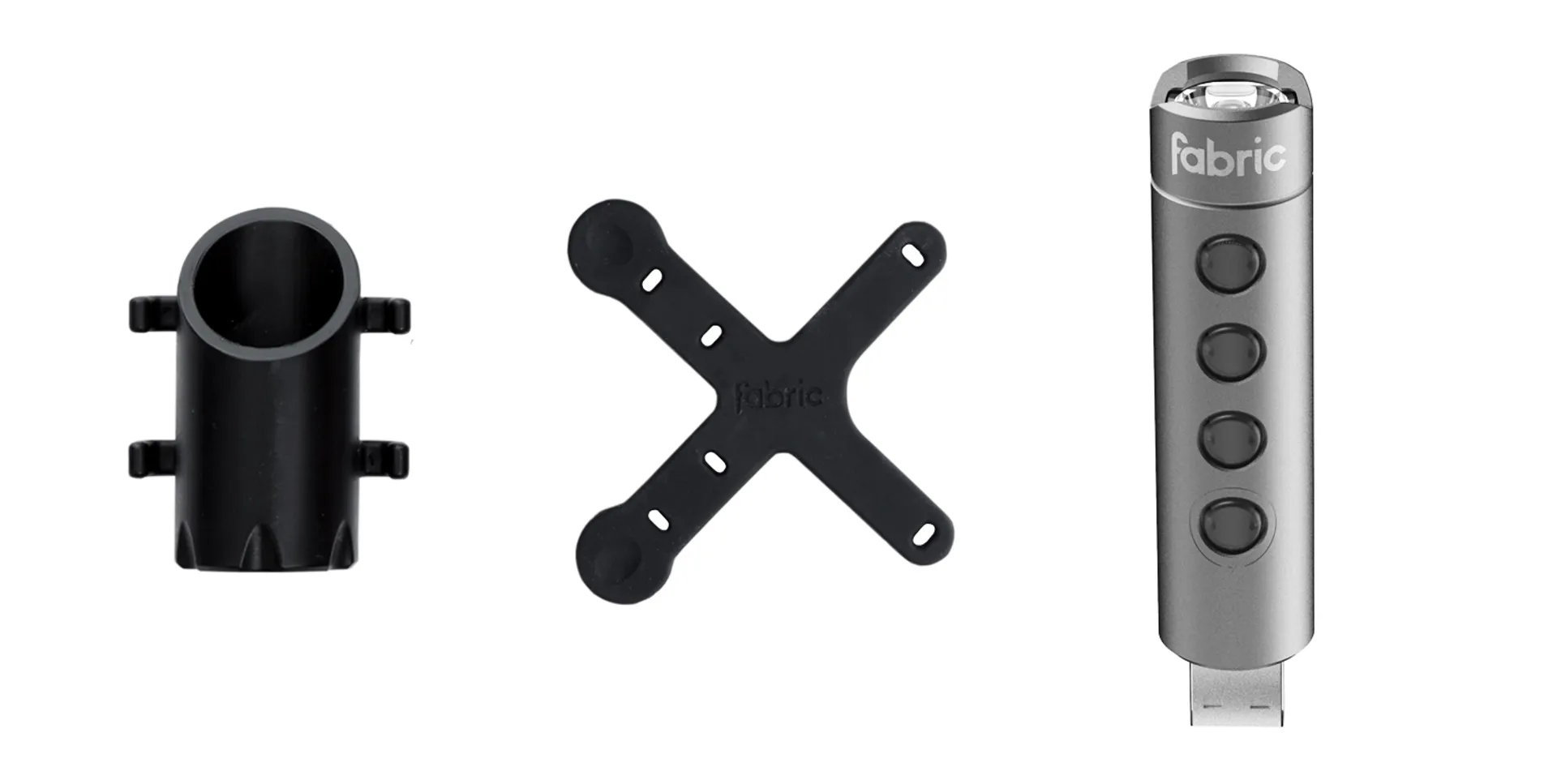 The Fabric FL150 Front Bike Light offers a high-quality, feature-rich solution for commuting. A lightweight, durable, 6061-series aluminum body, laser-etched with the Fabric logo, houses a 150-lumen headlamp from market leader CREE and four powerful LEDs, powered by a USB-rechargeable lithium battery.