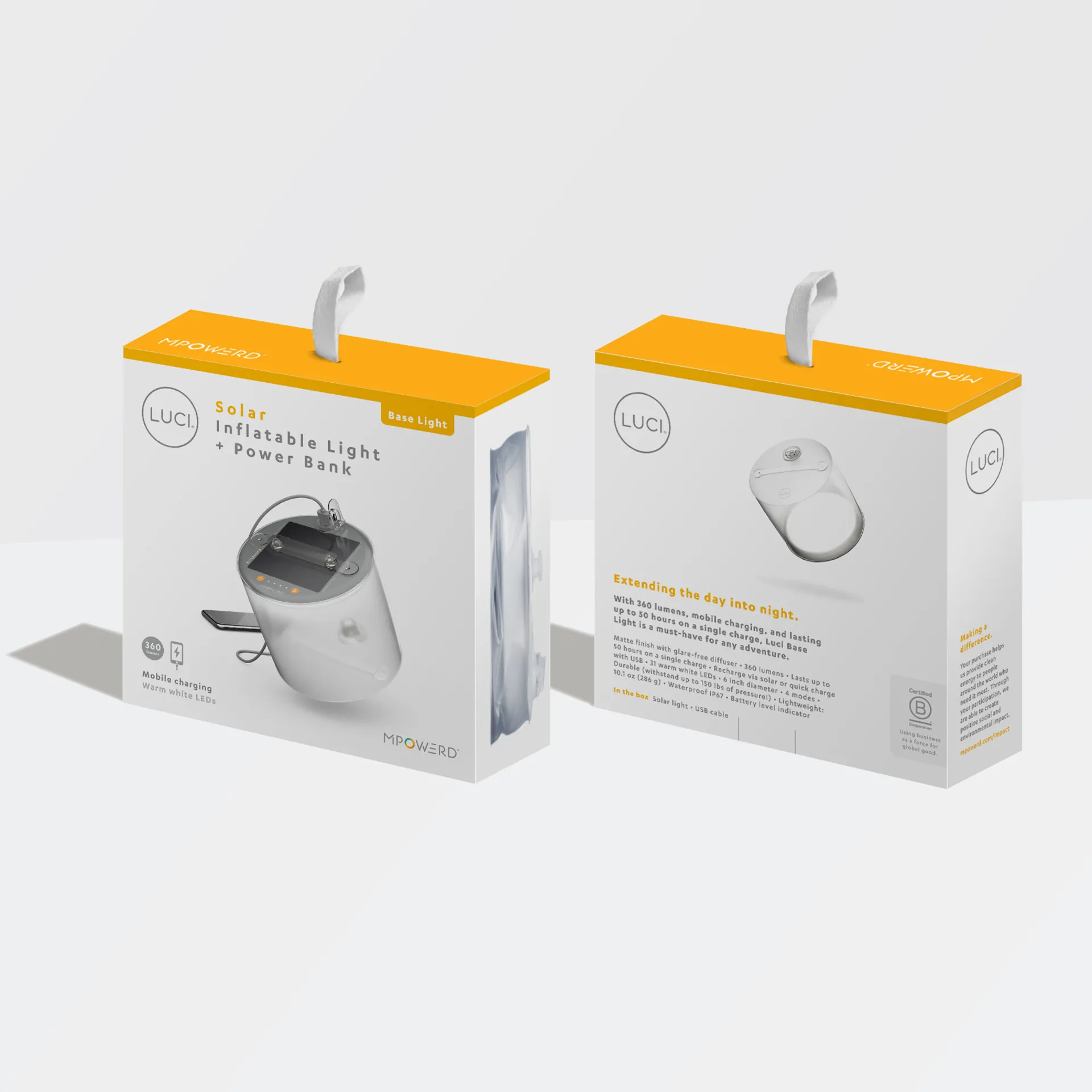Extending the day into night. With 360 lumens, cell phone charging, and lasting up to 50 hours on a single charge, Mpowerd Luci Base Light is a must-have solar lantern for any adventure.