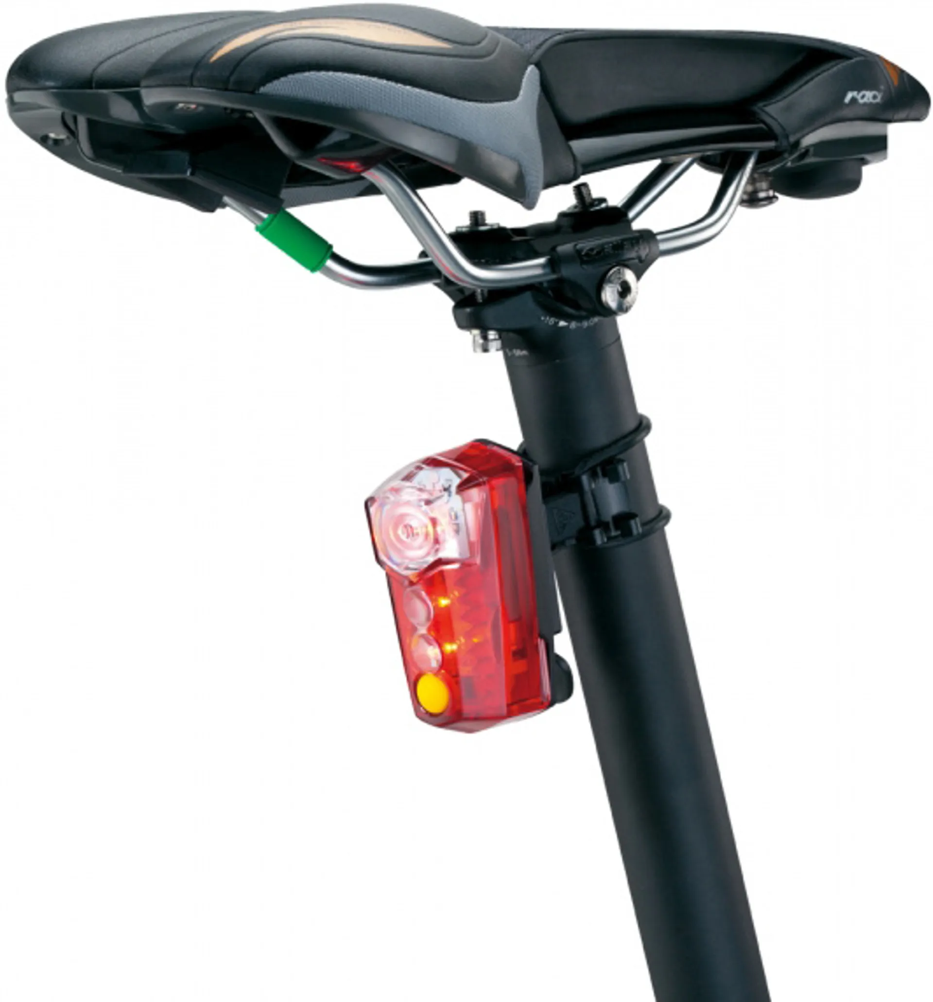 The Topeak RedLite Mega rear light is reckoned to be the brands most technically advanced safety light and I found it to be one of the best performers out there. Its a surprisingly compact, coffin-shaped design measuring 8x4x3cm so wont hog too much seatpost space and attaches via a cleverly sculpted resin bracket and sturdy rubberised doughnut bands. You should be able to get it onto most seatposts, and also mono-stays, helmets too if youre prepared to take the zip-tie route. Theres also a seatstay and clothing option, the latter being most effective while leaving the light much less vulnerable to damage/misalignment.