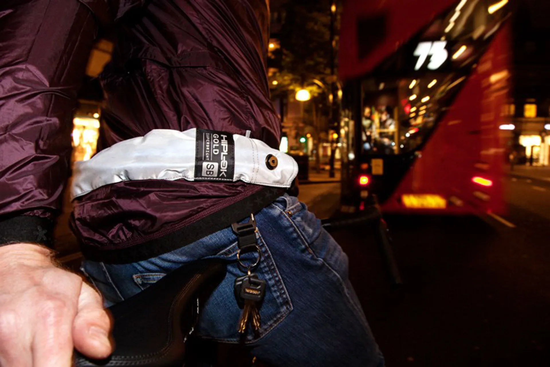 The Gold is the newest, highest-security lock from the Hiplok, the British company founded by two cycling industrial designers. The company created a solution to carrying a secure lock, without needing to bringing a bag or attaching the lock to the bike while riding.