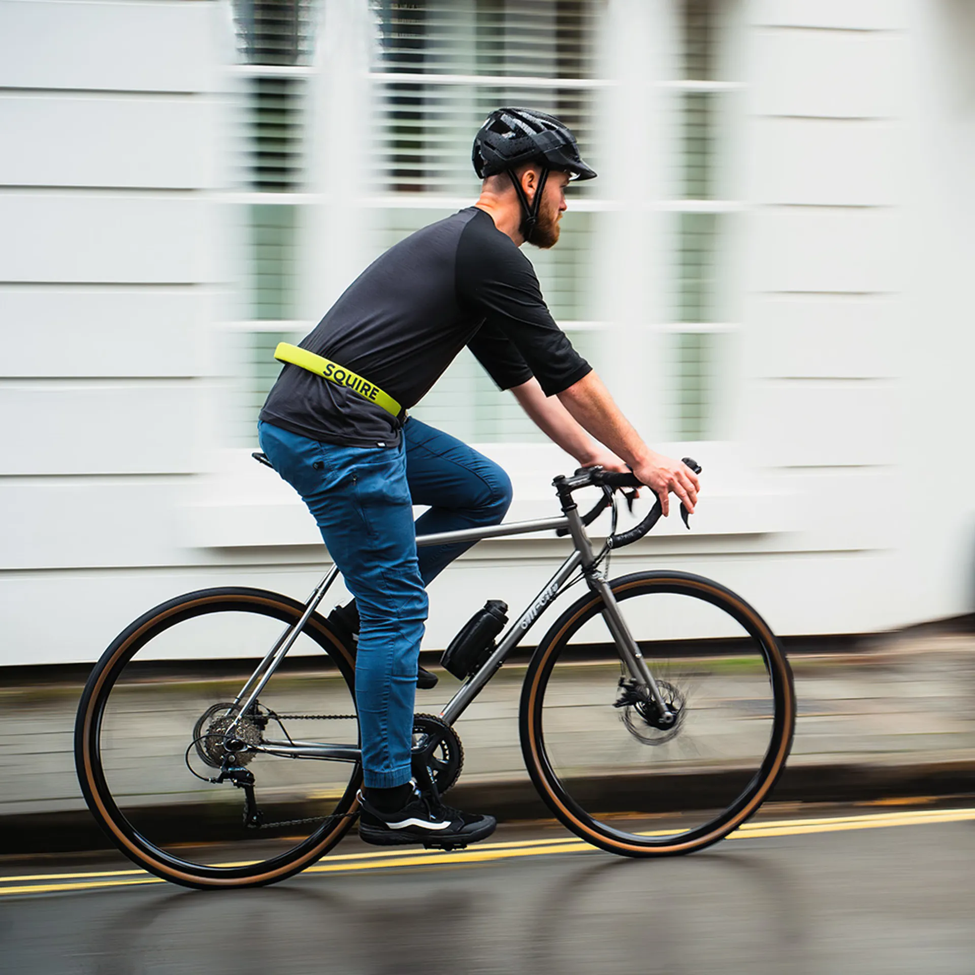 The Squire Straplok 35 Key Lock has a silicone outer layer with neoprene cover, comfortable to wear and won't scratch your bicycle frame.