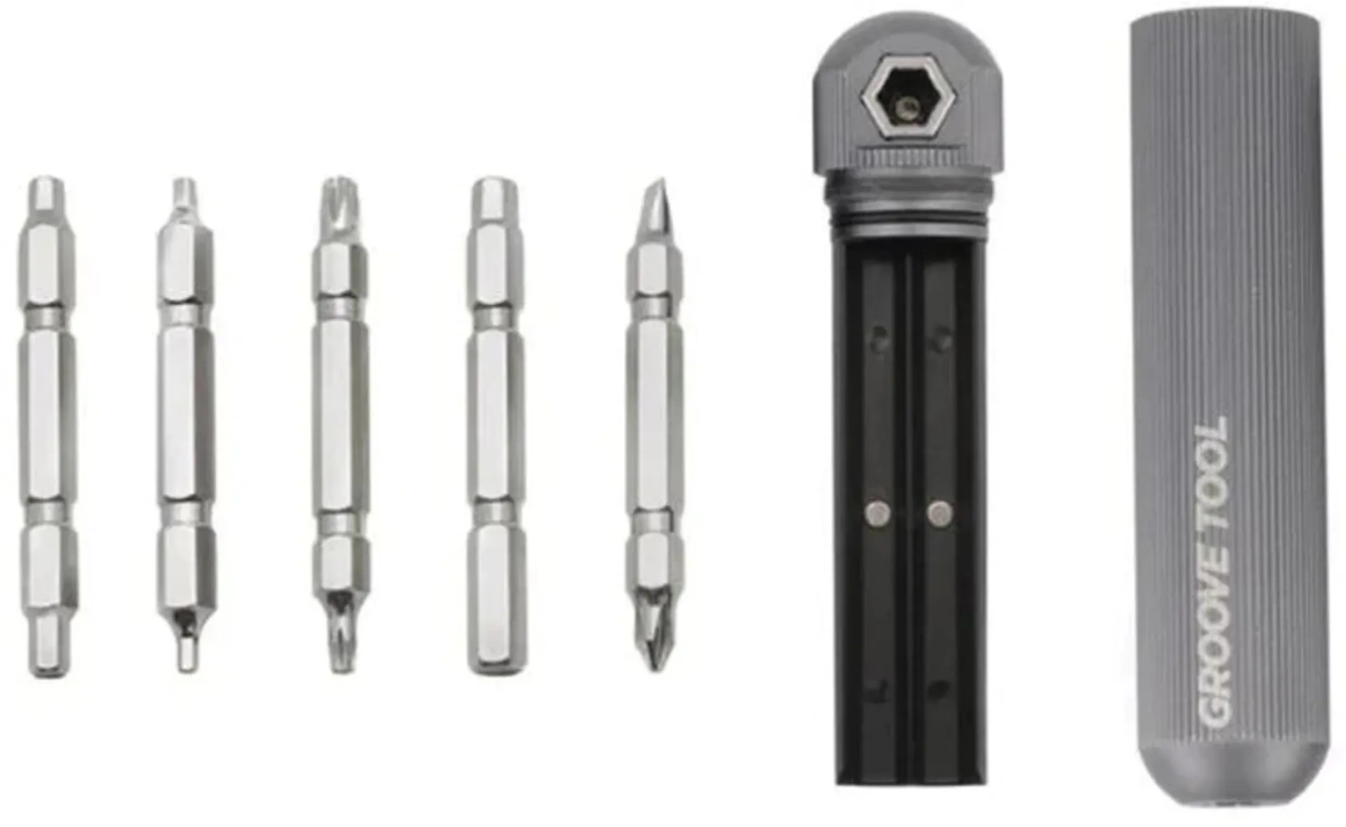 Featuring 5 Nickel-plated bits, the Groove Tool Pro provides a range of tools to help with any of those trail or road side adjustments and repairs