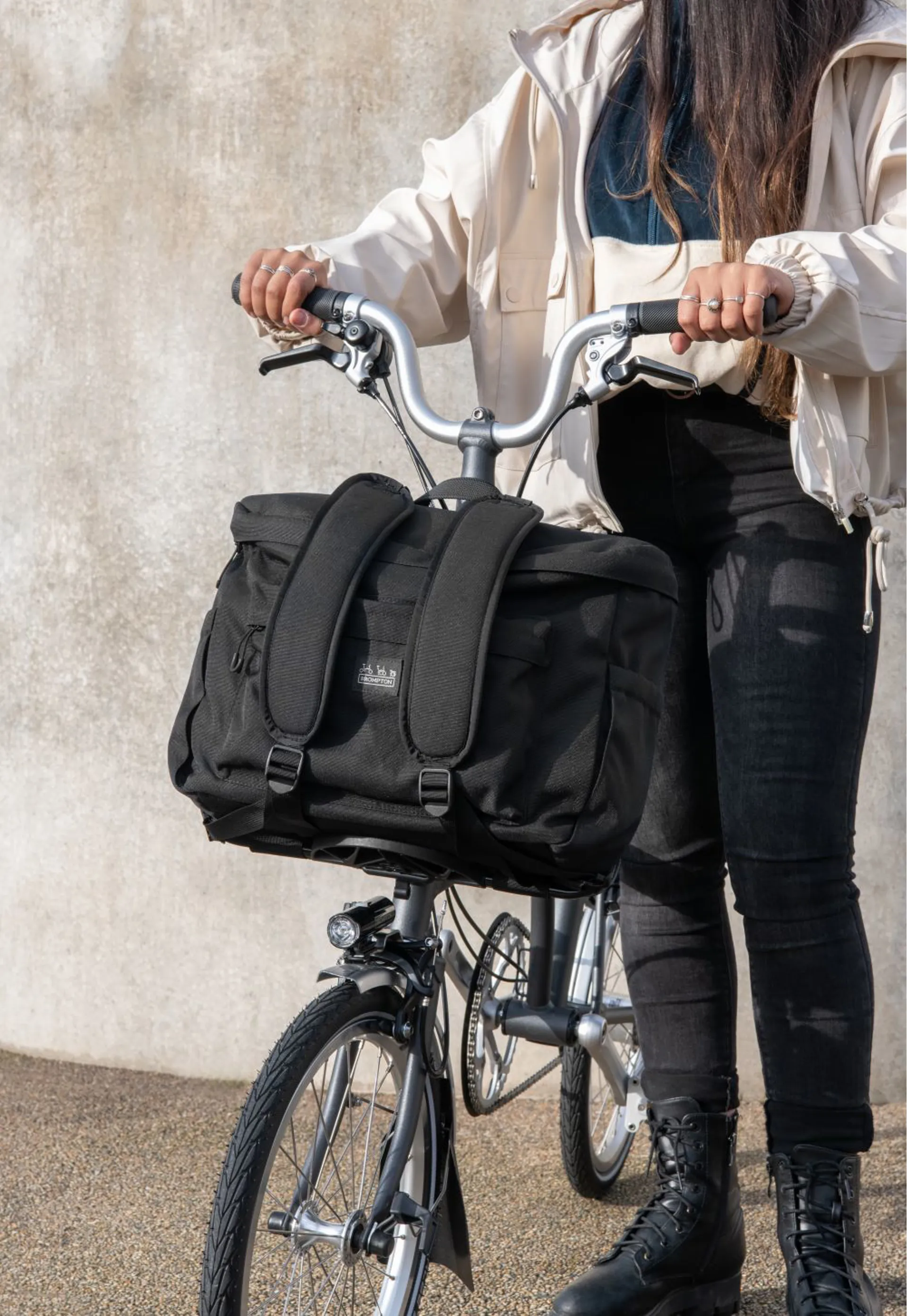 The frame included with every bag connects seamlessly onto the front carrier block of your Brompton. As the block is positioned on the main frame of the bike, your steering remains smooth and stable whatever your load.