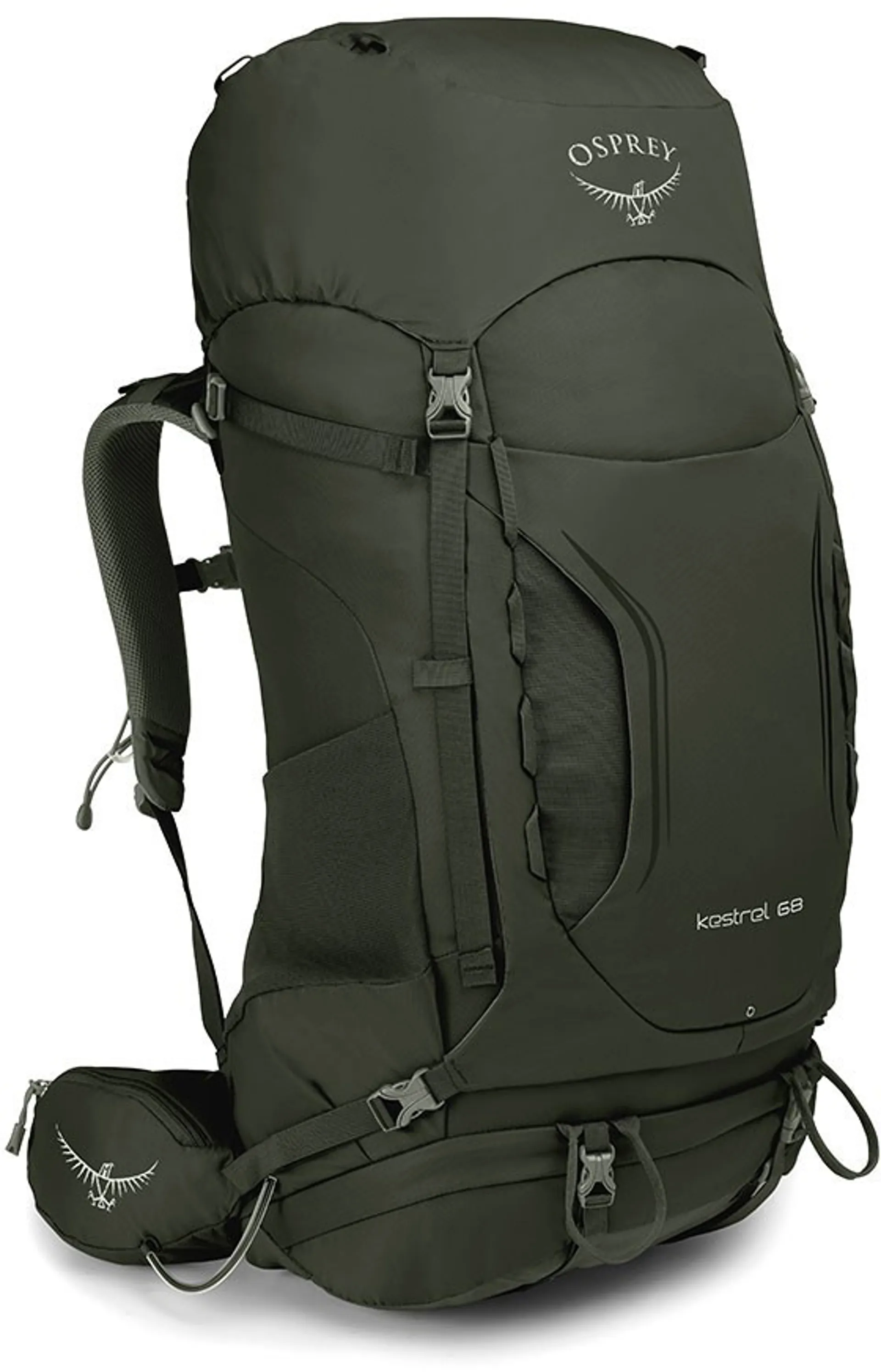 Kestrel’s backsystem has been designed for comfort and stability, featuring Osprey’s tried and tested AirScape backpanel and a sturdy hipbelt and harness design, these packs will comfortably carry a heavy load. An adjustable design allows you to personalise the height of the backpanel with ease, using a hook-and-loop torso panel. Kestrel 68 features numerous locations to store your backpacking essentials, including nylon-reinforced water bottle pockets, dual zippered hipbelt pockets, a large front shove-it pocket, top lid pocket, under lid pocket with key-clip and external-access hydration sleeve.