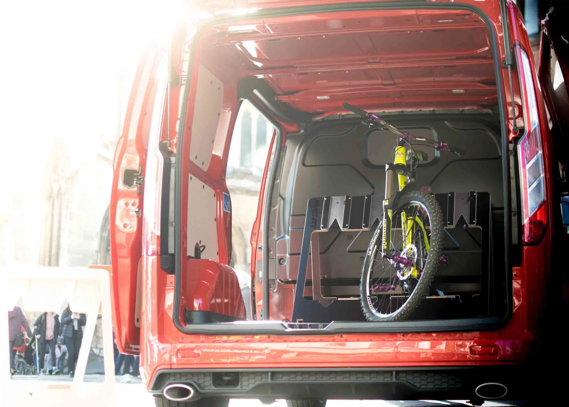• ‘V’-slider instantly fits different wheel sizes & tyre widths.