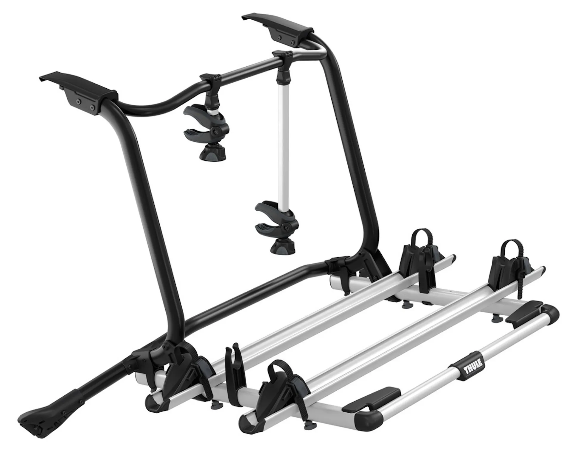 • Easy mounting of bikes through detachable bike arms with lockable Thule AcuTight torque limiter knobs that click when optimal torque is reached