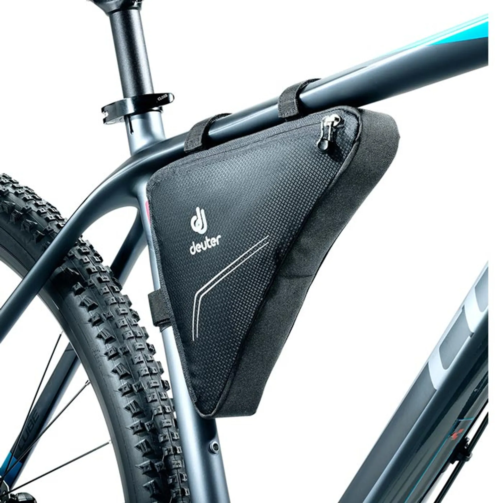 The Deuter Triangle Bag. Classic triangular shaped frame bag made from a sturdy nylon with plenty of space for spare inner tubes, tools, pump... and will fit most bike frames via secure velcro straps with flexible re-enforcements.