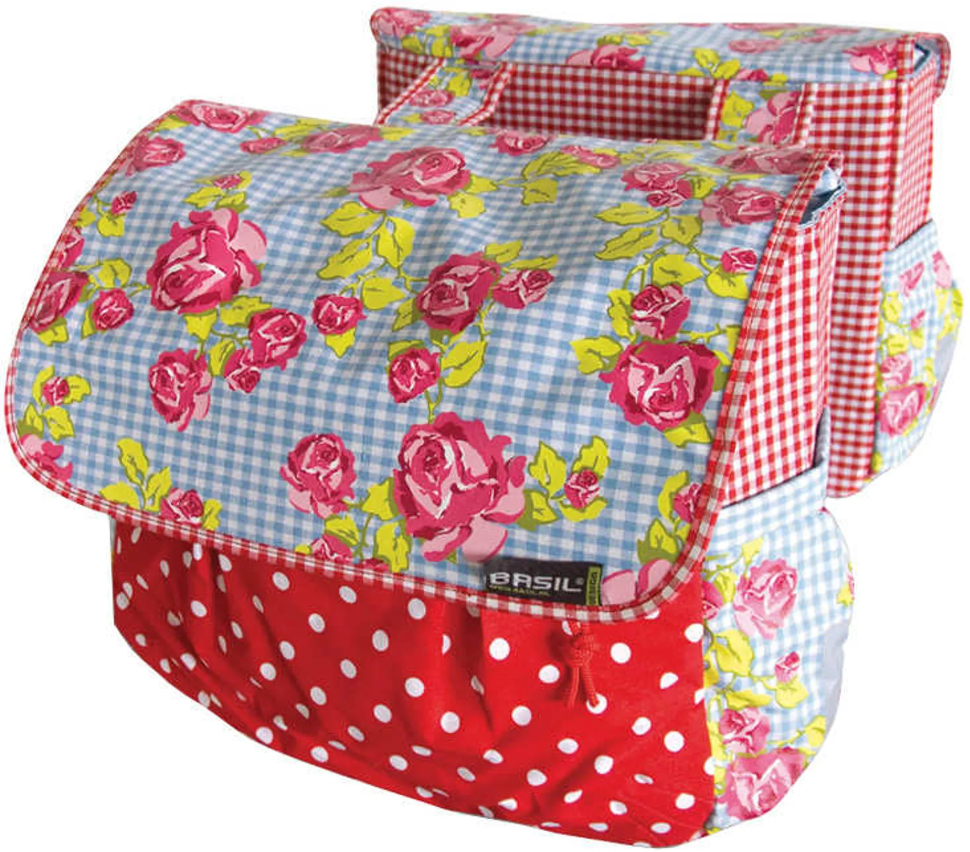 he Basil Blossom Flower Print Double Pannier Bag 35L is a womens solution for storage space on a bike. With a funky blossom flower print it is certainly an eyecatcher.
