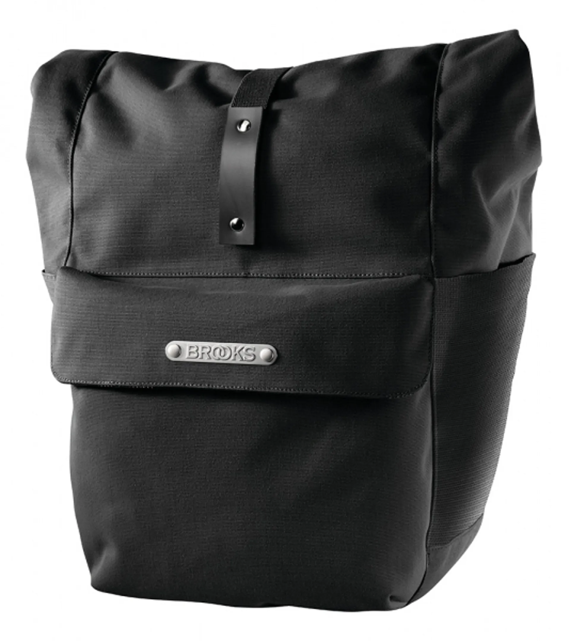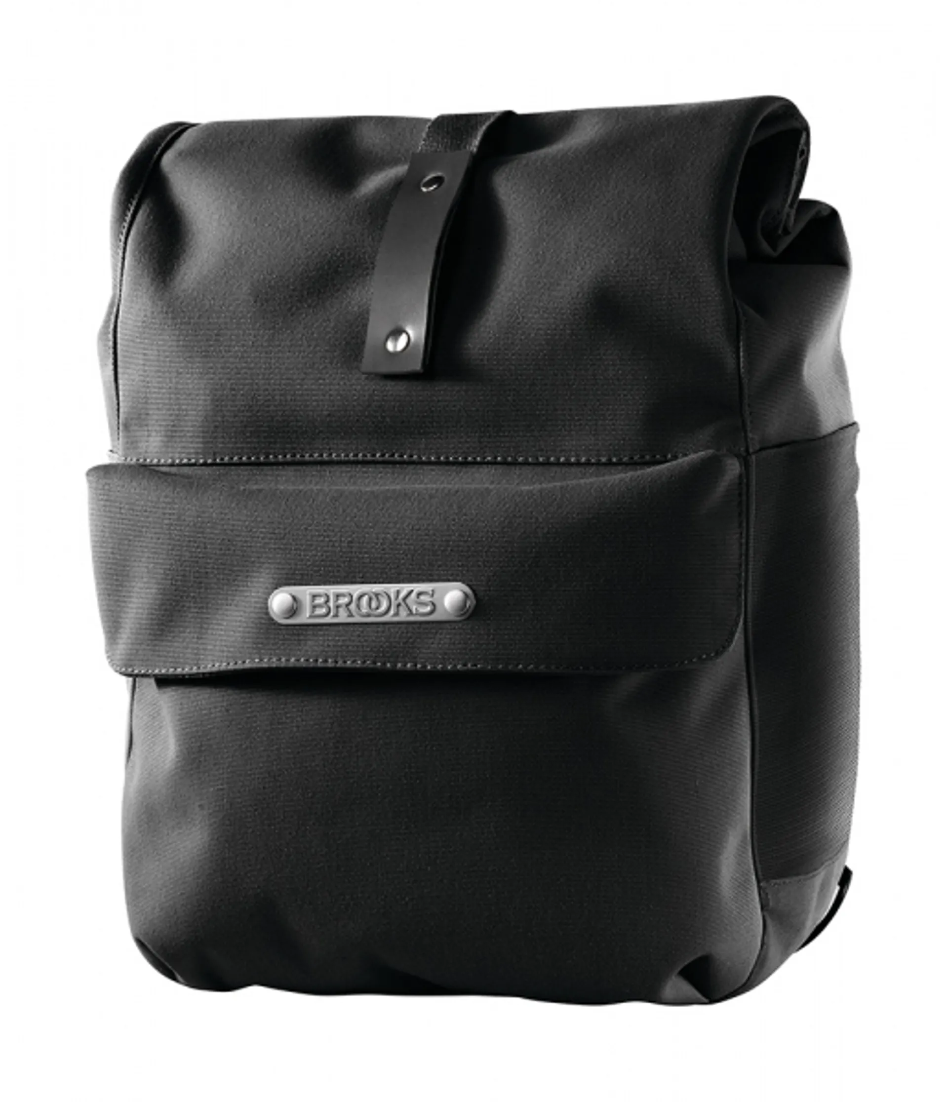 The Brooks Norfolk Front Pannier Bag. The new standard for style and function in travel luggage. These roll-top panniers fit everything you need for a cycling adventure. A a convenient large outer pocket and additional four-way stretch side pockets secure water bottles, jackets, or other often-needed items.