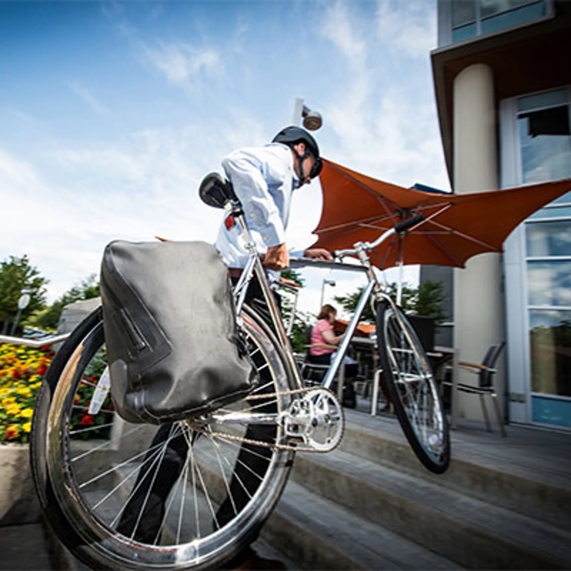 • Attention: remove shoulder strap and stow away inside bag prior to biking