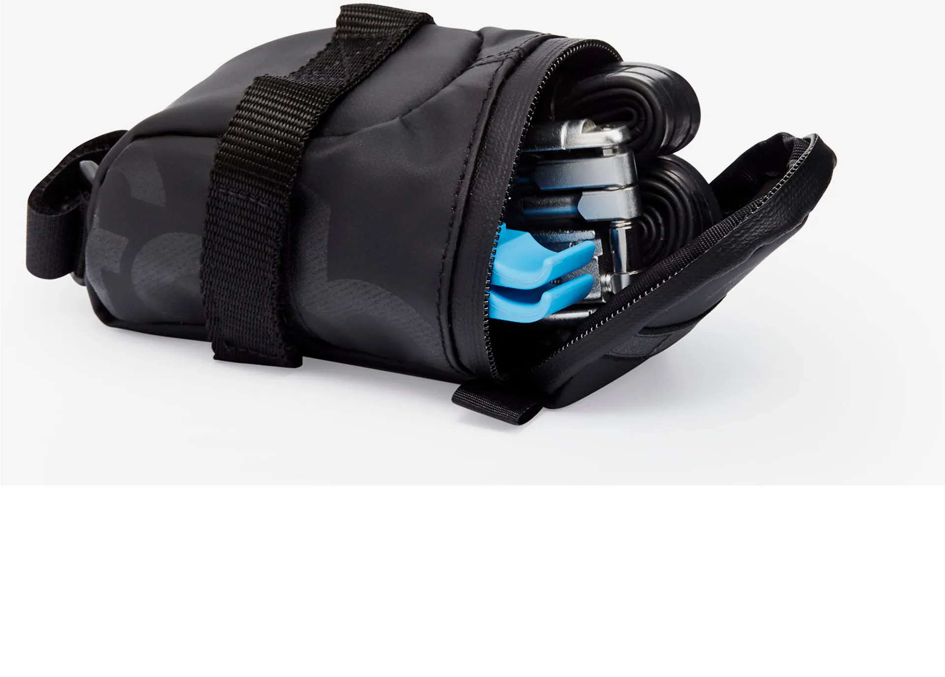 The Fabric Contain Saddle Bag will help you pack your ride essentials and protect them from the elements. Compact and durable, the saddle bag attaches securely underneath your saddle using two heavy-duty webbed Velcro straps. Ideal for carrying an inner tube, tyre levers, multi-tool, puncture repair kit, keys, cash and more. A rear safety light can be attached to the reflective loop on the rear, helping to improve your visibility in low light conditions.