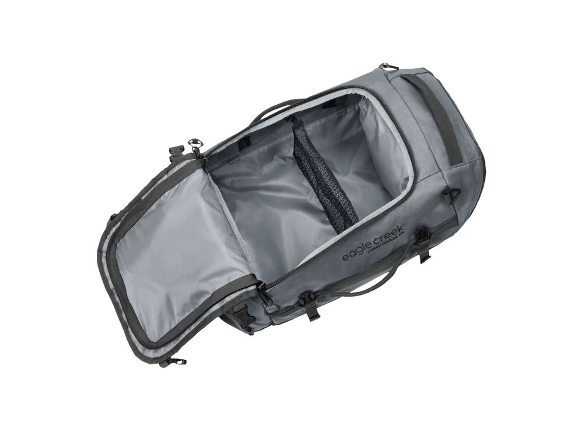 The versatile Eagle Creek Cargo Hauler Duffel has Haul handles and backpack straps for versatile carry. The heavy duty daisy chain lash points are great for attaching the bag to a roof rack and the compression straps compact contents and provide gear attachment.