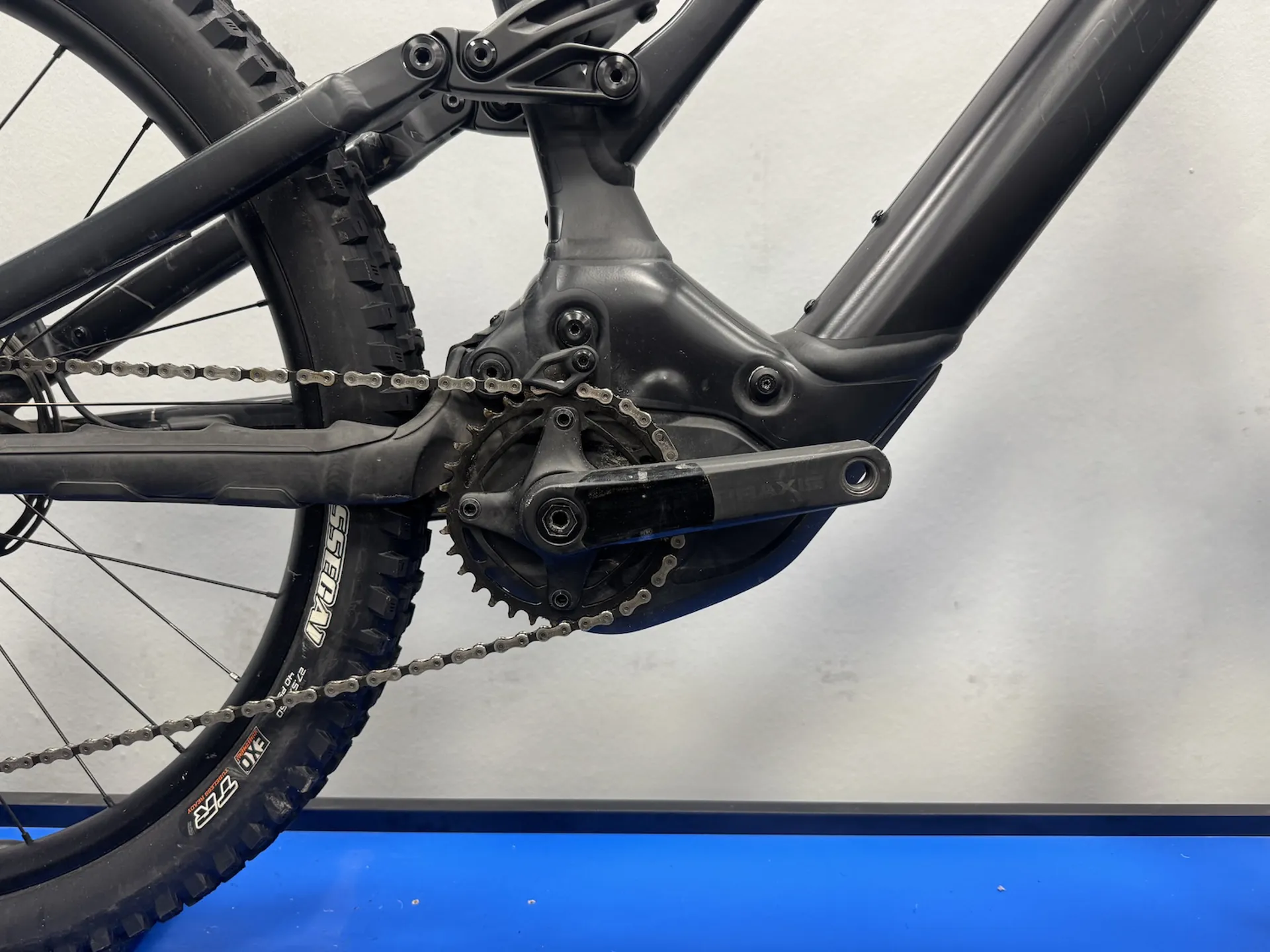 Damage Details: This is a second-hand Levo Alloy, recently part-exchanged by a customer. The bike is in reasonable condition and has had an unbranded frame protection applied by its previous owner. There are no major signs of damage, though normal wear is visible on the wrap, cranks, and some other areas of the frame. The bike is supplied with a charger for the removable 700Wh battery, which powers the Brose motor delivering 90Nm of torque.