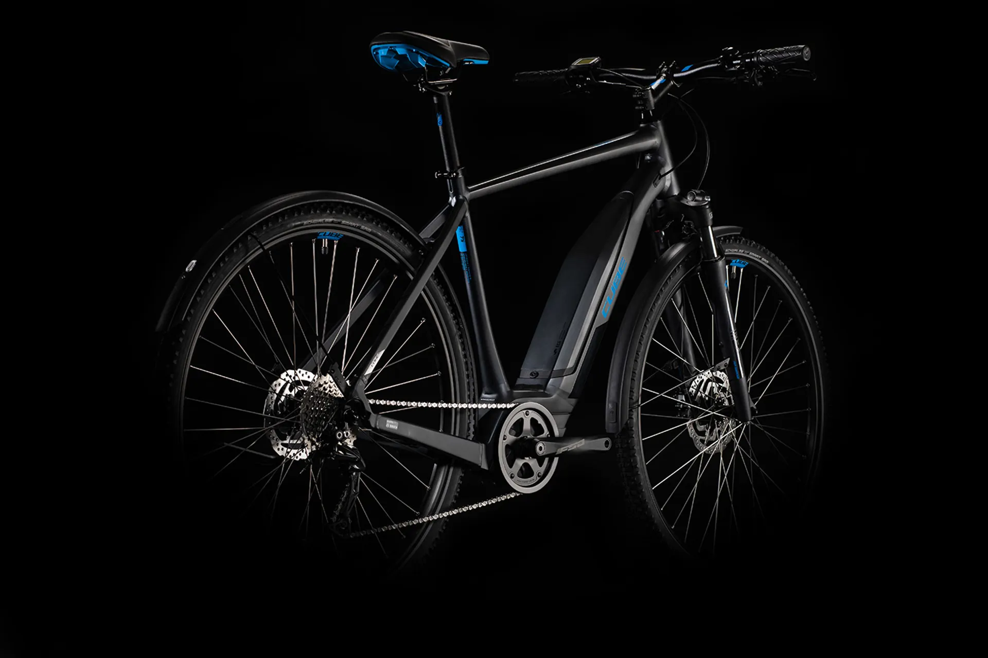 One bike, many reasons: The Cube Nature Hybrid ONE 400 Allroad Electric Bike is the Bosch e-bike that'll slot right into your life. Fully equipped with mudguards, an AXA and Busch & Müller lighting system that runs off the Bosch battery and a kickstand, it's ready to go wherever you go. So neatly integrated is the Bosch motor and battery, many people won't even spot that you're riding an e-bike - and they're protected from the elements, too.