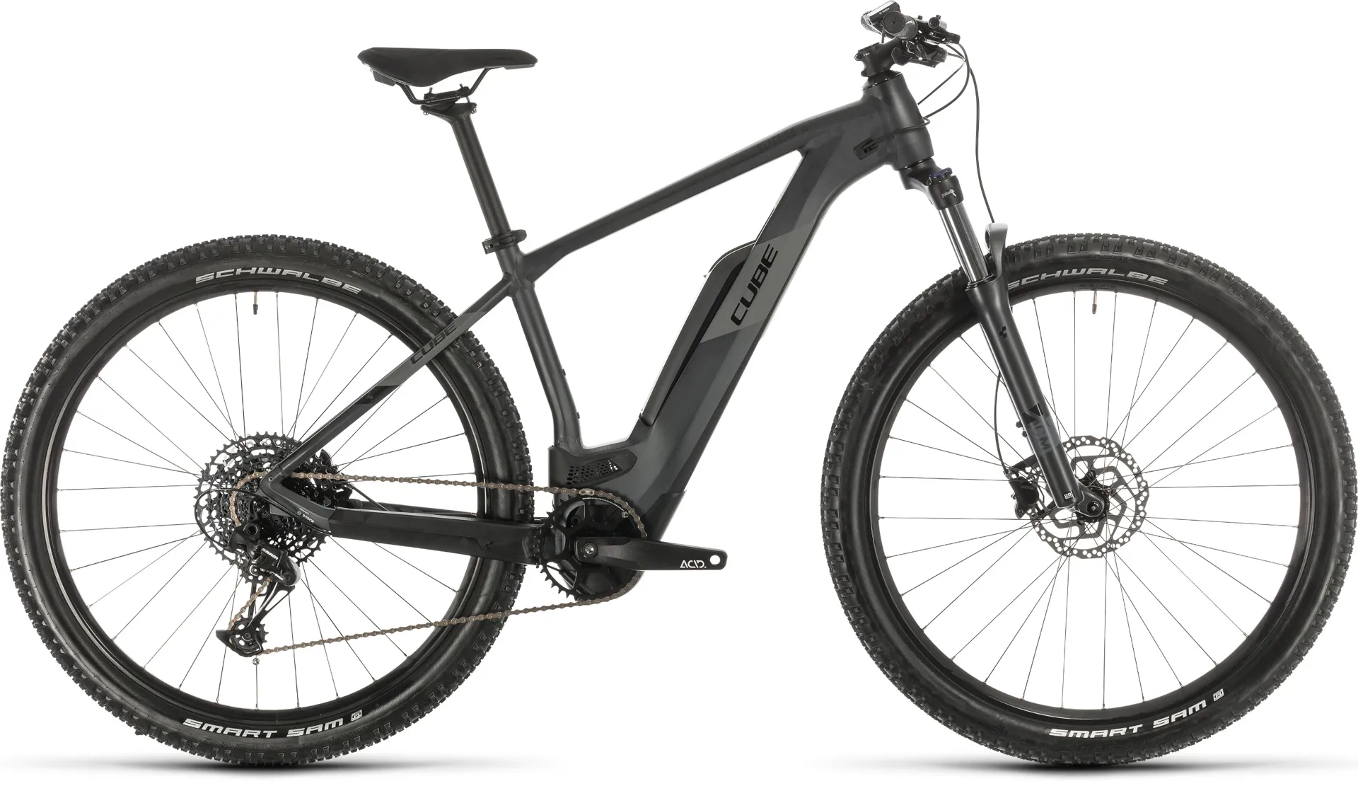 The designers at Cube always start with a clear goal in mind. In the case of the Reaction Hybrid Pro, it was a simple one: build a Bosch e-bike that will help its rider get more out of the trails they ride. To that end, they went back to the drawing board for 2020 and came up with a brand-new frame design that's sleeker, stiffer and more versatile than ever, incorporating Bosch's fourth-generation CX motor. Integrated cable routing complements the clean lines and reduces maintenance, whilst compatibility with CUBE accessories and a remote dropper post makes upgrading and accessorising a cinch. The seamlessly integrated Bosch drive unit and battery, controlled via a Purion handlebar-mounted interface, quietly and efficiently gets on with the job of boosting your pedal power for easier climbs, faster routes and expanded horizons. You can even charge the battery without removing it from the frame. Sram's superb SX Eagle 12-speed transmission provides an awesome gear range, while Shimano's smooth, powerful MT200 hydraulic disc brakes ensure you can control your speed whatever the weather or trail conditions. Extra-wide, grippy Schwalbe Smart Sam tyres offer ample grip and cushioning and our Natural Fit Sequence saddle ensures you'll stay comfortable on even the longest rides. Best of all, our Size Split system - and the option of a trapeze frame - means that there's a Reaction Hybrid Pro to suit every rider. Which means that there's nothing stopping you from getting more out of your riding...