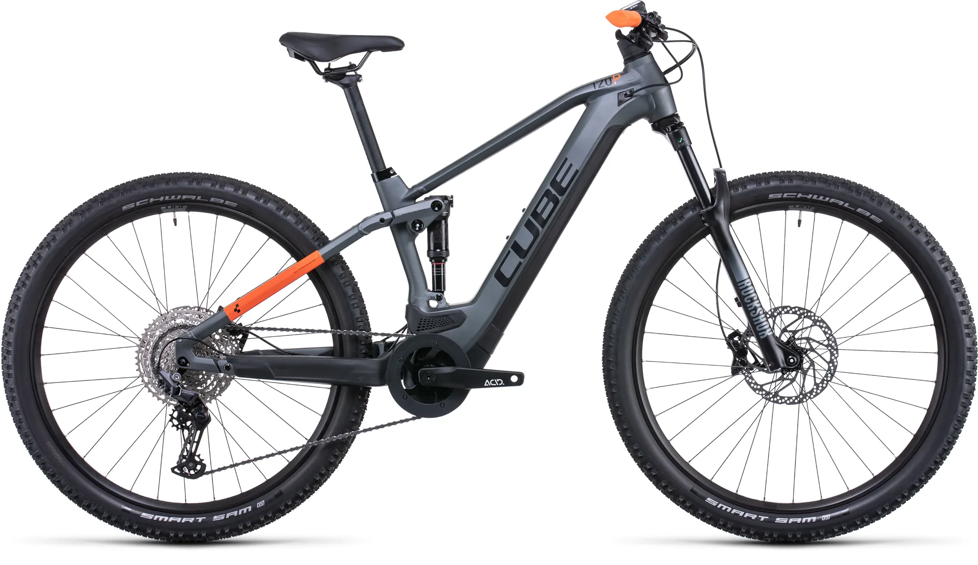 Cube Stereo Hybrid 120 Pro 625 Electric Mountain Bike 2022 Grey/Orange