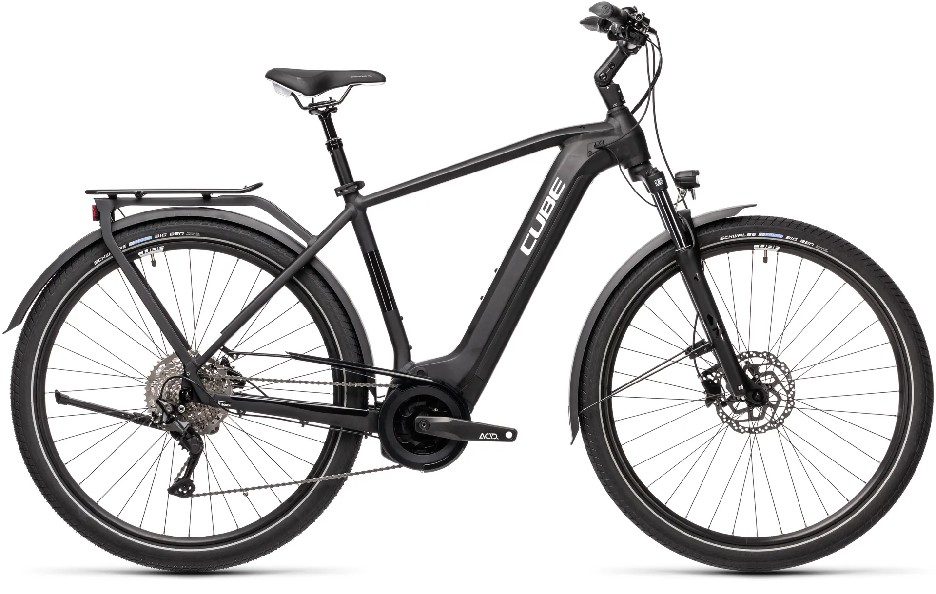 Have your Touring Hybrid the way you want it. Classic men's, trapeze or easy entry, each version features the same attention to detail. Built around Bosch's powerful third-generation motor and Powertube battery, Cube have taken care to keep the centre of gravity low for safety and easy handling. Efficent Comfort Geometry does exactly what it says, putting you in the ideal position to enjoy every ride. And the Integrated Carrier is a masterpiece of understated engineering excellence, providing a strong and rigid means of carrying your day-to-day possessions with you.