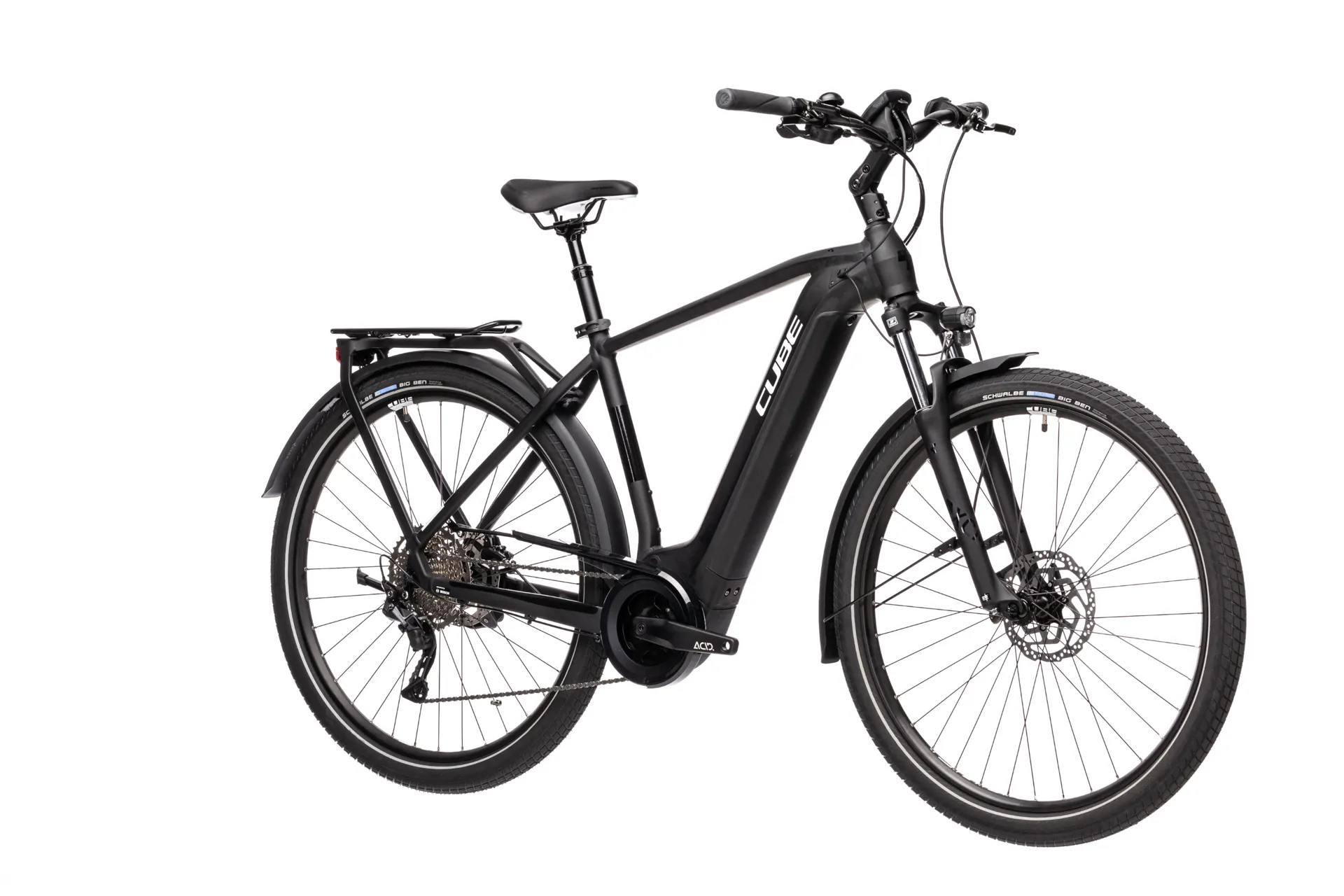 There's also Cube's strong, rigid and integrated carrier for essential cargo. Powerful shimano hydraulic disc brakes for all weather stopping performance. Full length mudguards help keep you dry from spray and the wetter weathers.