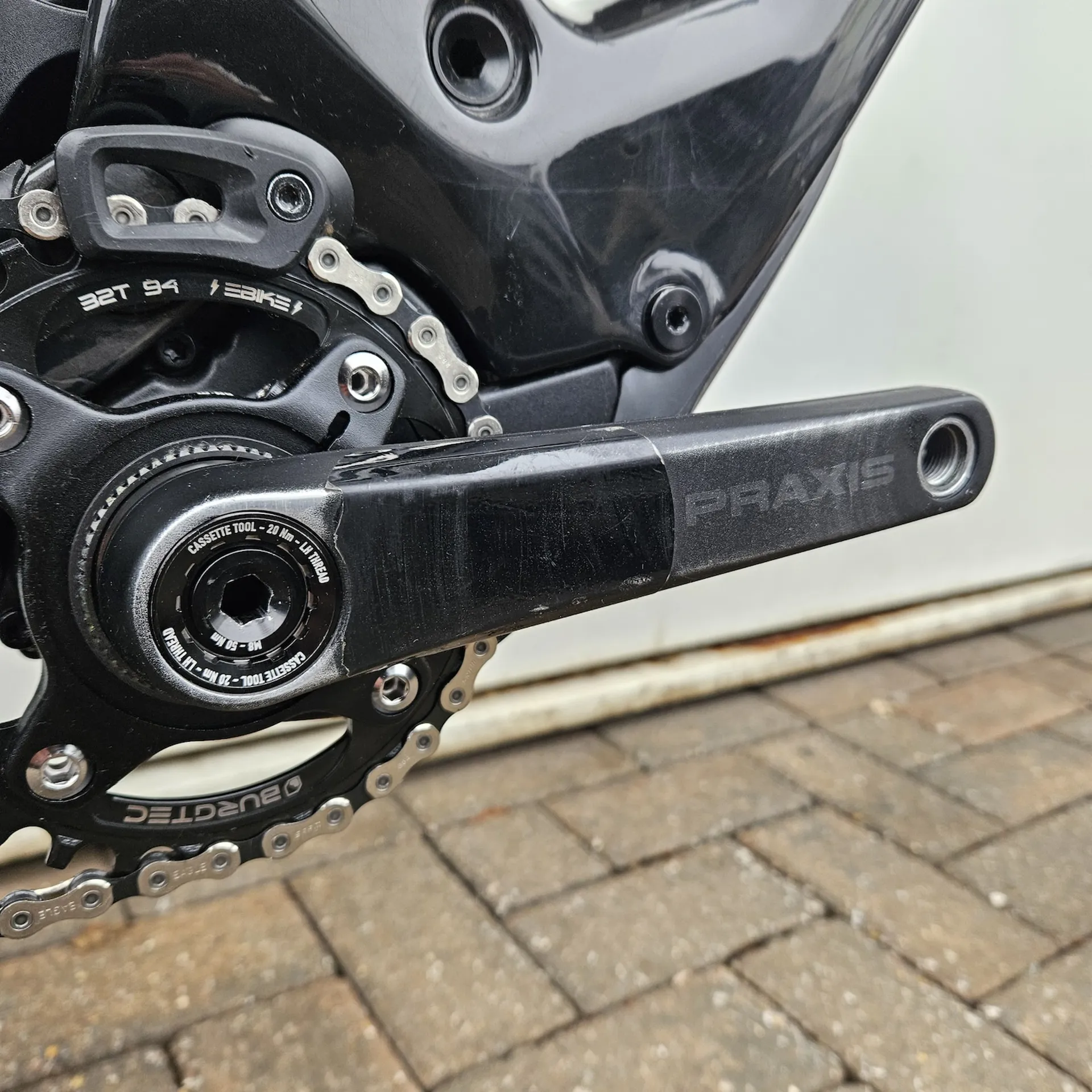 Crankset:Praxis, forged M30, custom offset