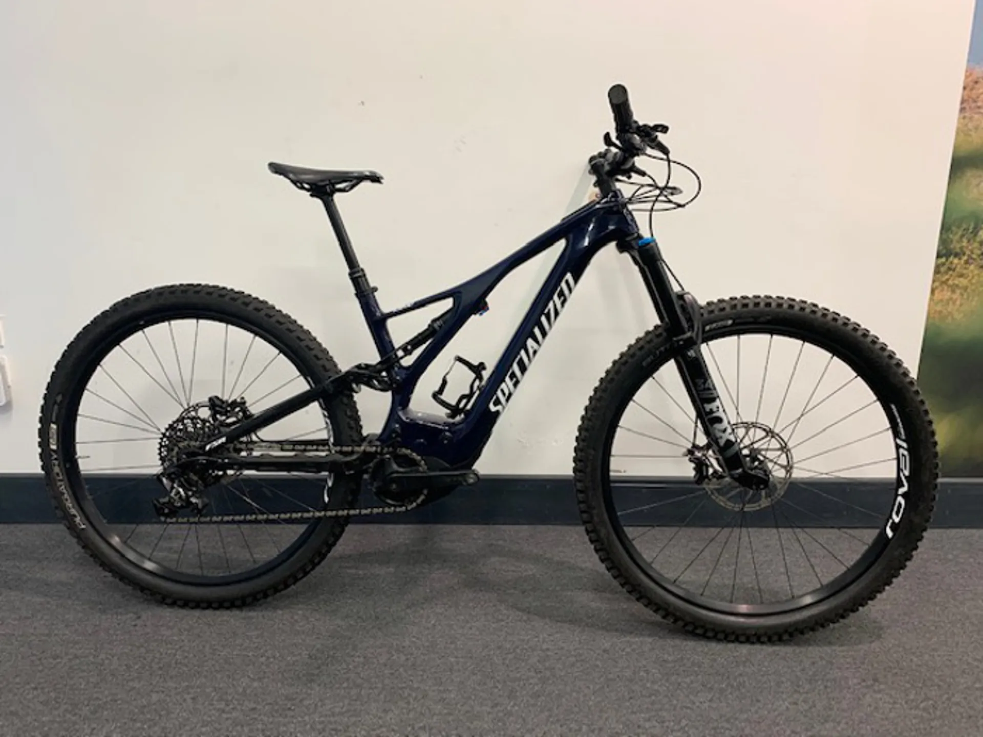 Ex Demo 2019 Specialized Turbo Levo FSR Comp Carbon 29er Blue Tint/White in size Medium. With 500wh battery