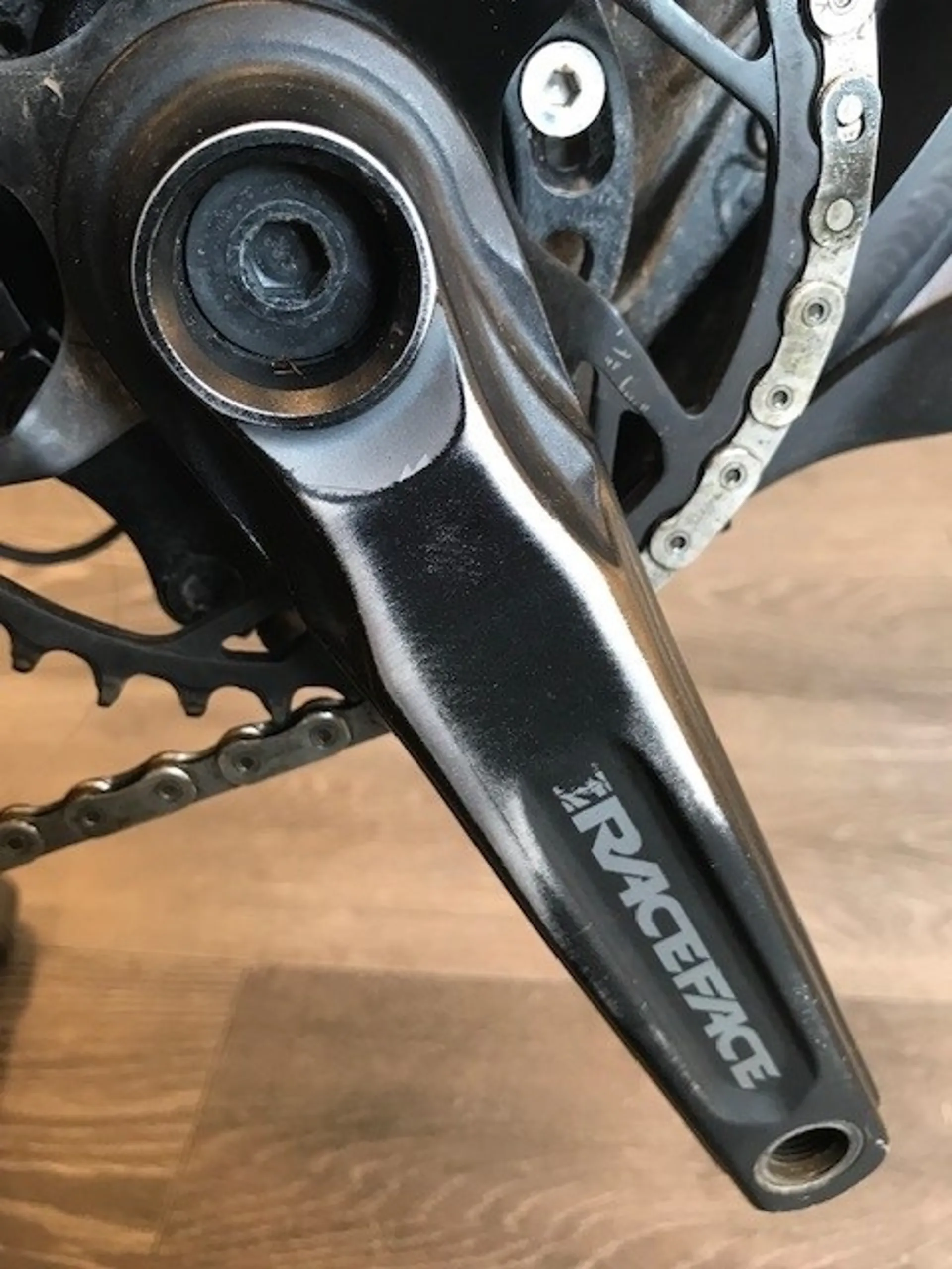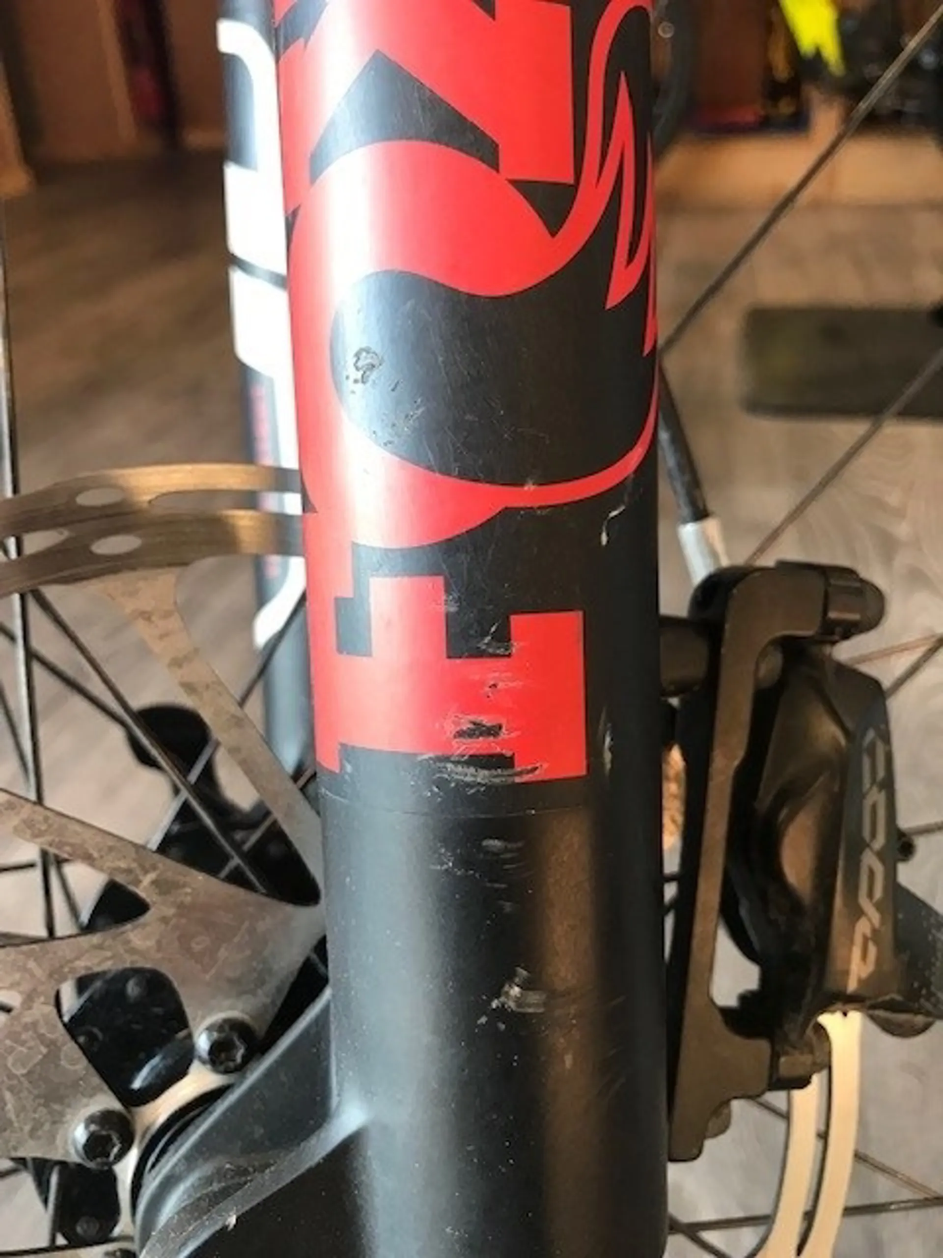 Damage Details: The gloss silver finish has many area's of scuffing in the lacquer. Usual cosmetic damage to anodising on Raceface cranks and damage to fork decals
