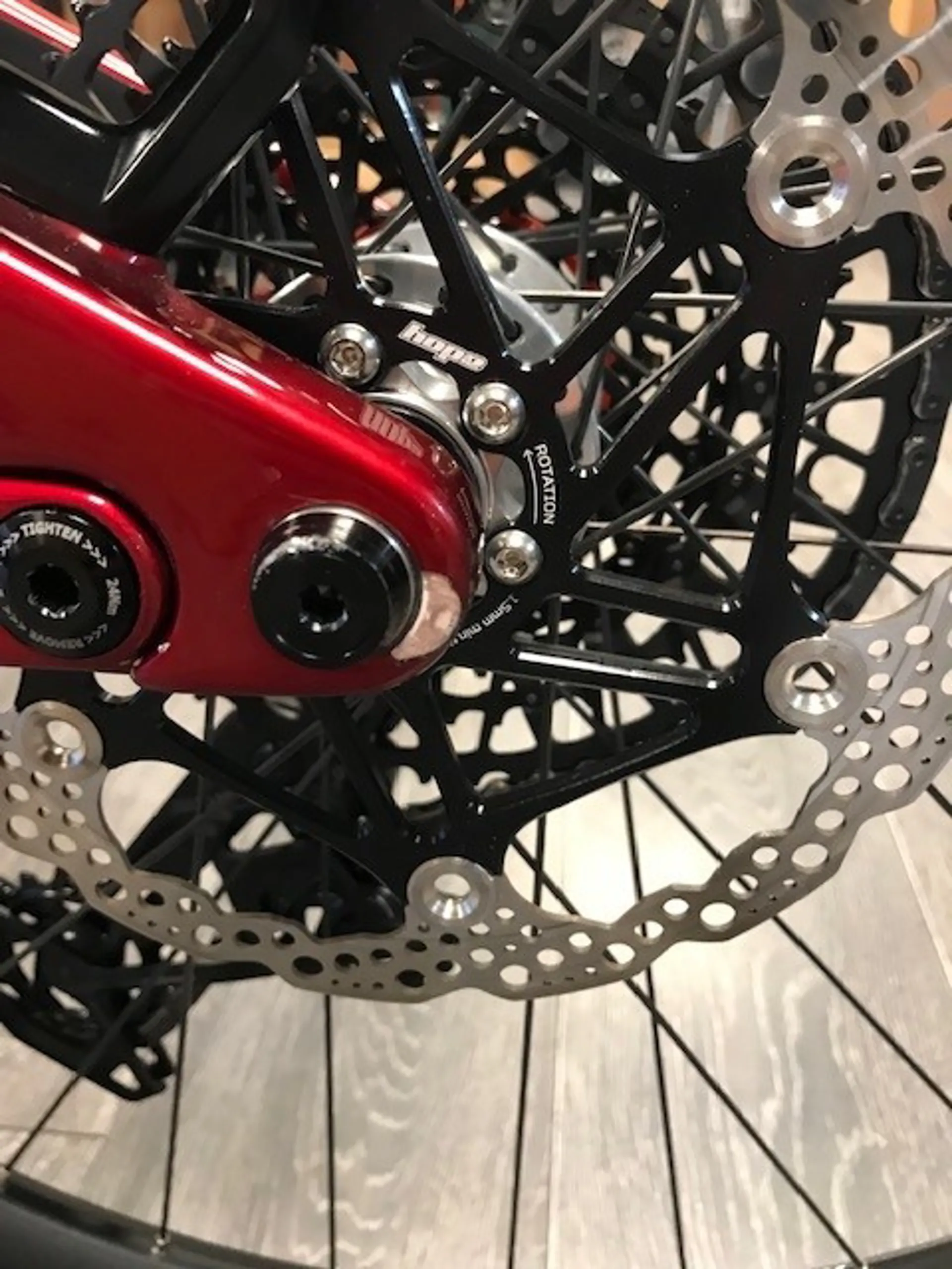 Hope Tech4 V4, four piston hydraulic, 200mm diameter floating disc rotor