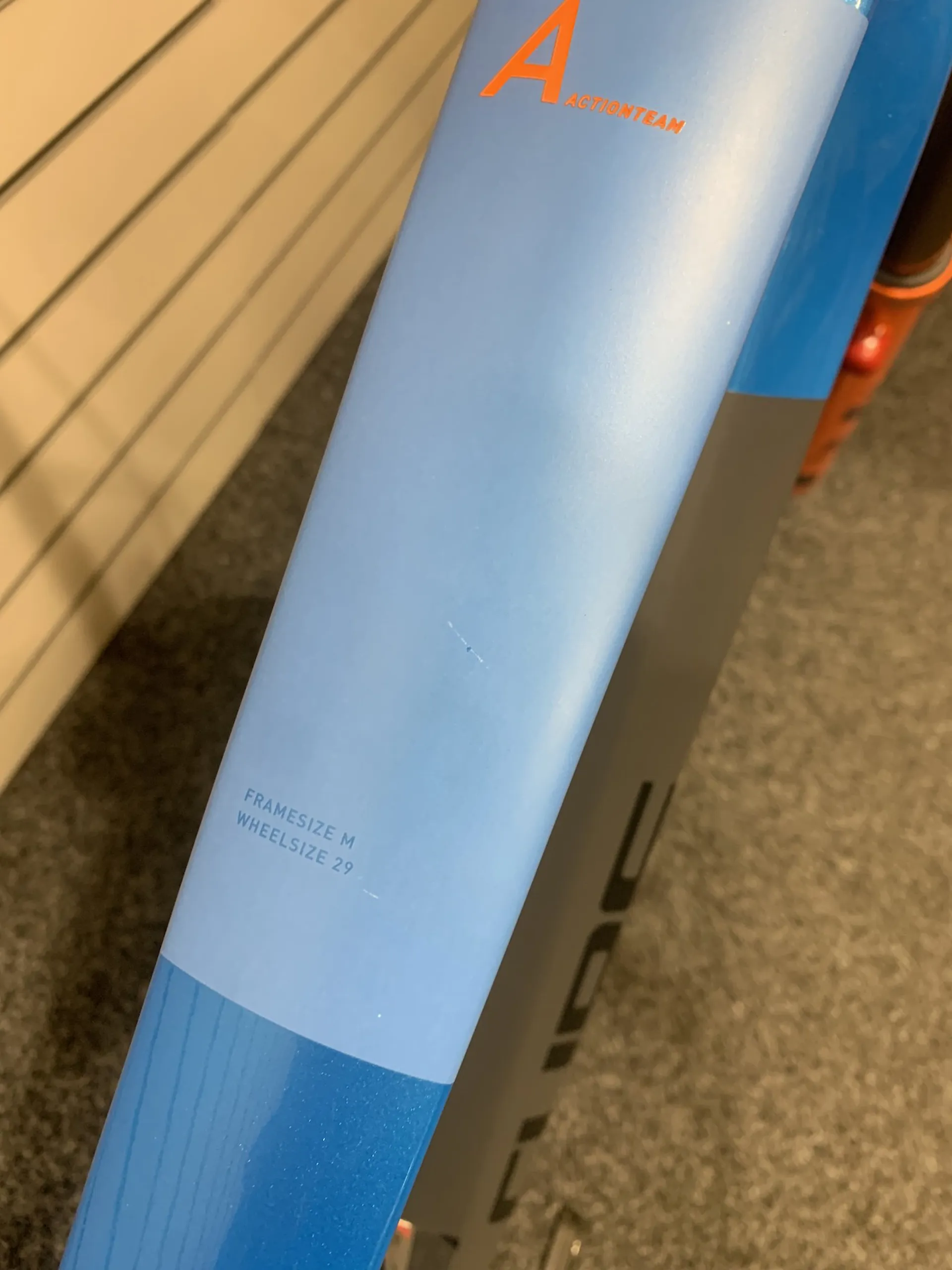 Damage Details: Small mark on the top tube and a small chip near he linkage.