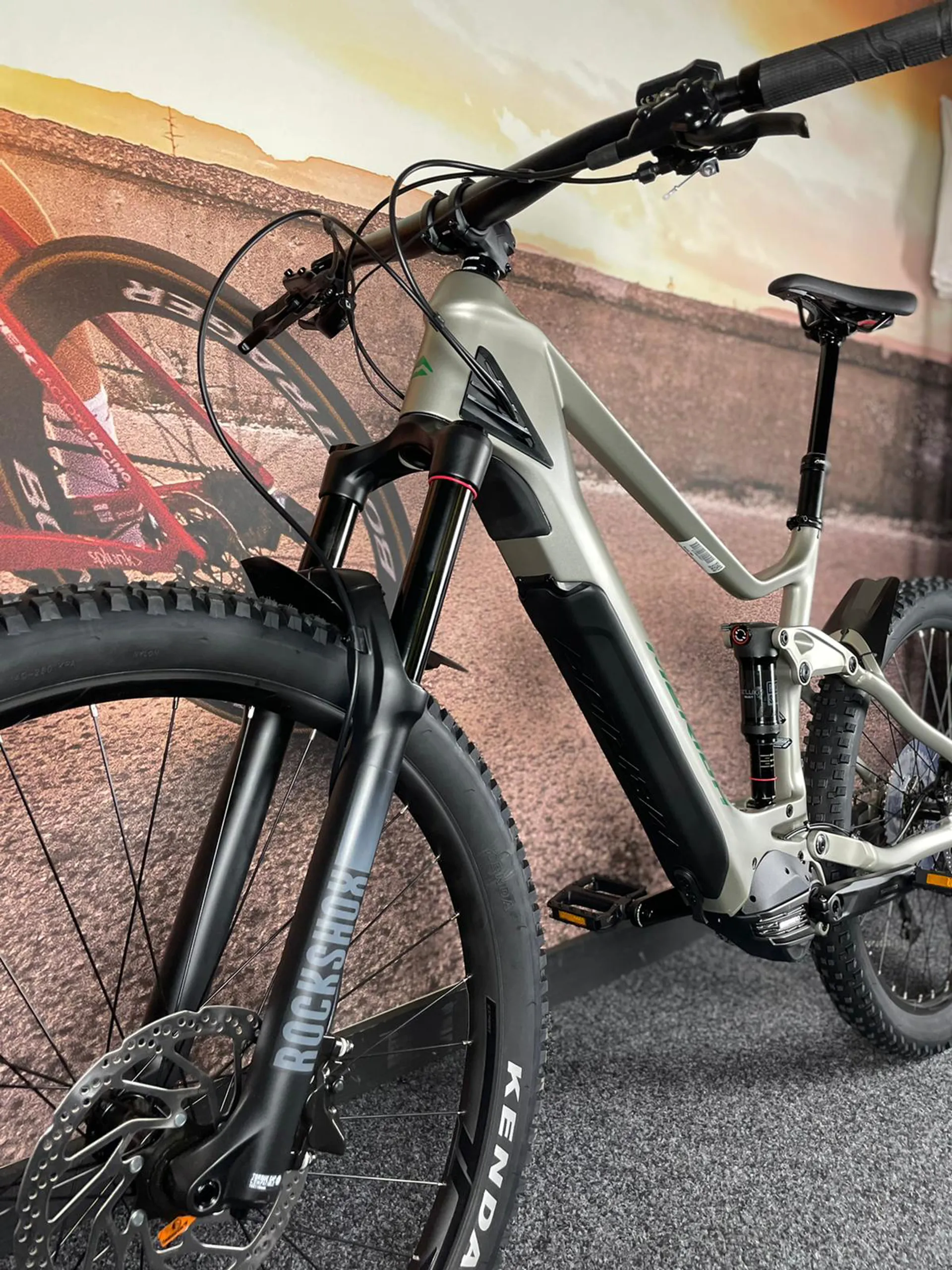 FRAMECFA II Carbon front triangle with easily removable integrated battery, satellite on/off switch, on-bike charging port and “thermo gate” with 6016 aluminium rear end. Internal cable routing, Smart entry for rattle free running.