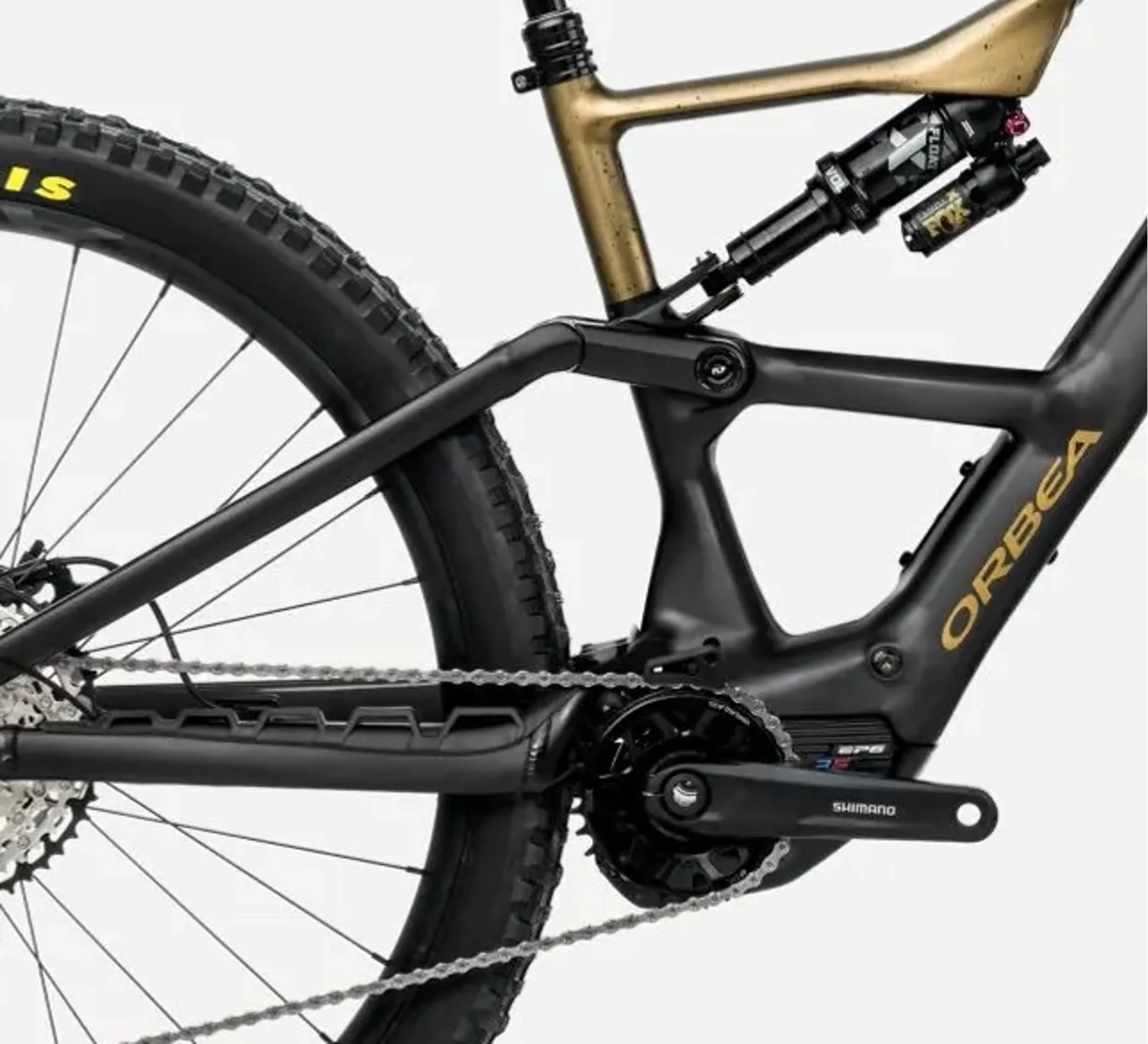 The integrated 630Wh battery provides extended range for long rides, and with the Orbea Range Extender, you can boost the capacity for epic trail adventures. The sleek design, featuring Diamond Black with Splash Olive Green accents, is not only eye-catching but also functional, housing the electrical components neatly for a streamlined appearance.