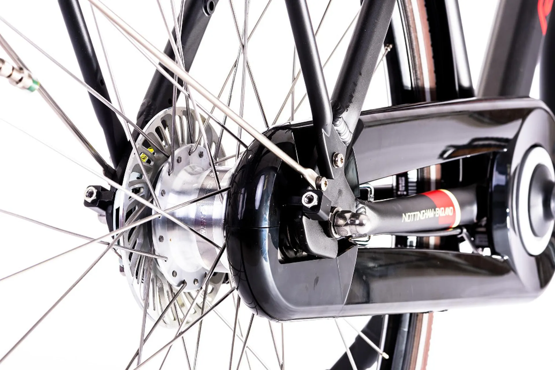 The front wheel motor is coupled with 7 speed Shimano Nexus hub gears changed with the easy to use twist shift dial and provide a wide range of gears to choose from. Hub gears are perfect if you want to minimise the maintenance requirements of your new bike as all of the component parts are safely sealed away in the hub, protecting them from ingress of dirt, water and grease. Plus, a clever integrated rear wheel lock has been added to the bike on the seat stays which can be quickly applied while you pop into the shops.