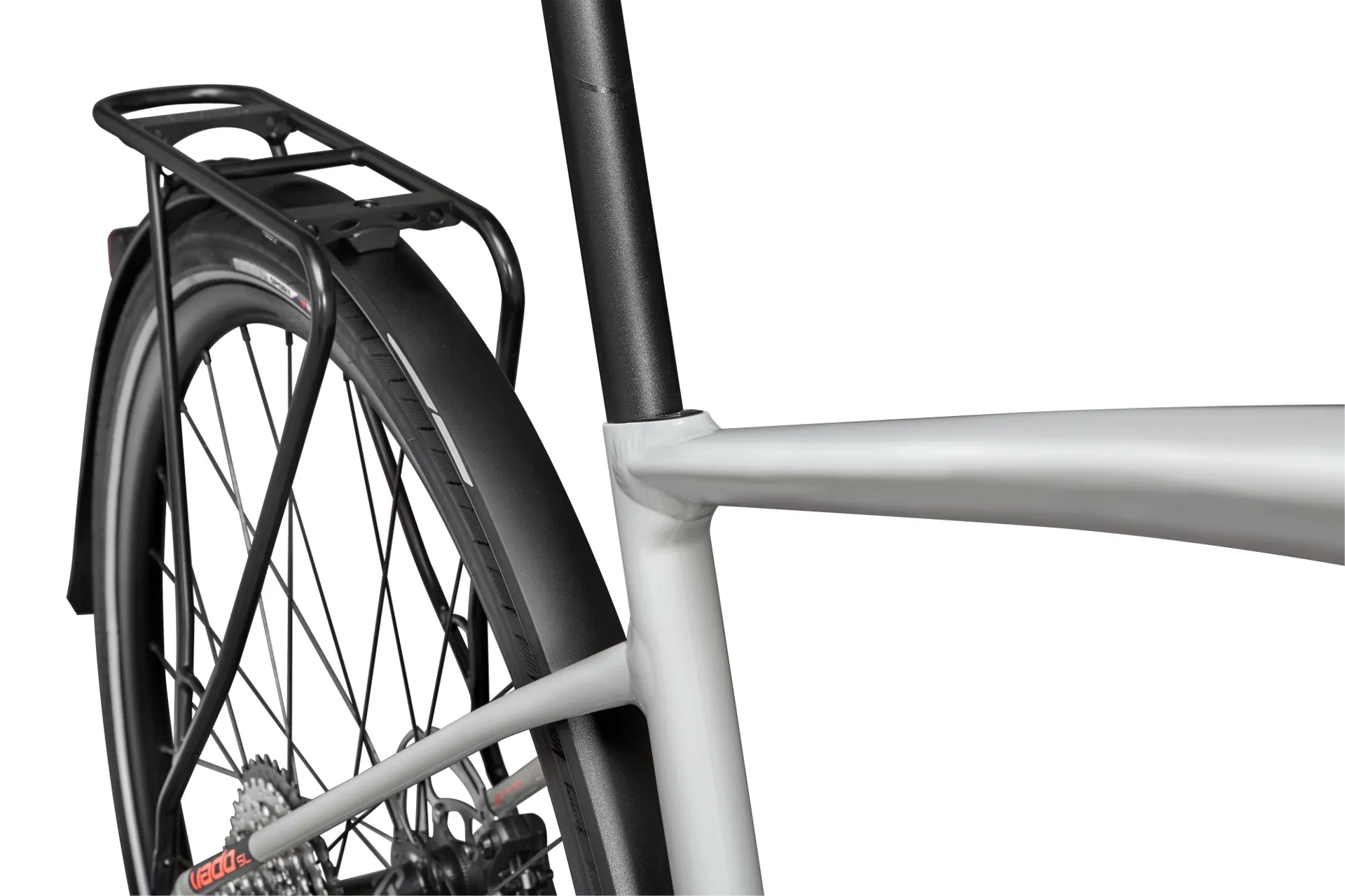 • Turbo SL mounted rear rack, Racktime-compatible for your favorite bags and panniers, and DRYTECH fenders to keep the spray away.