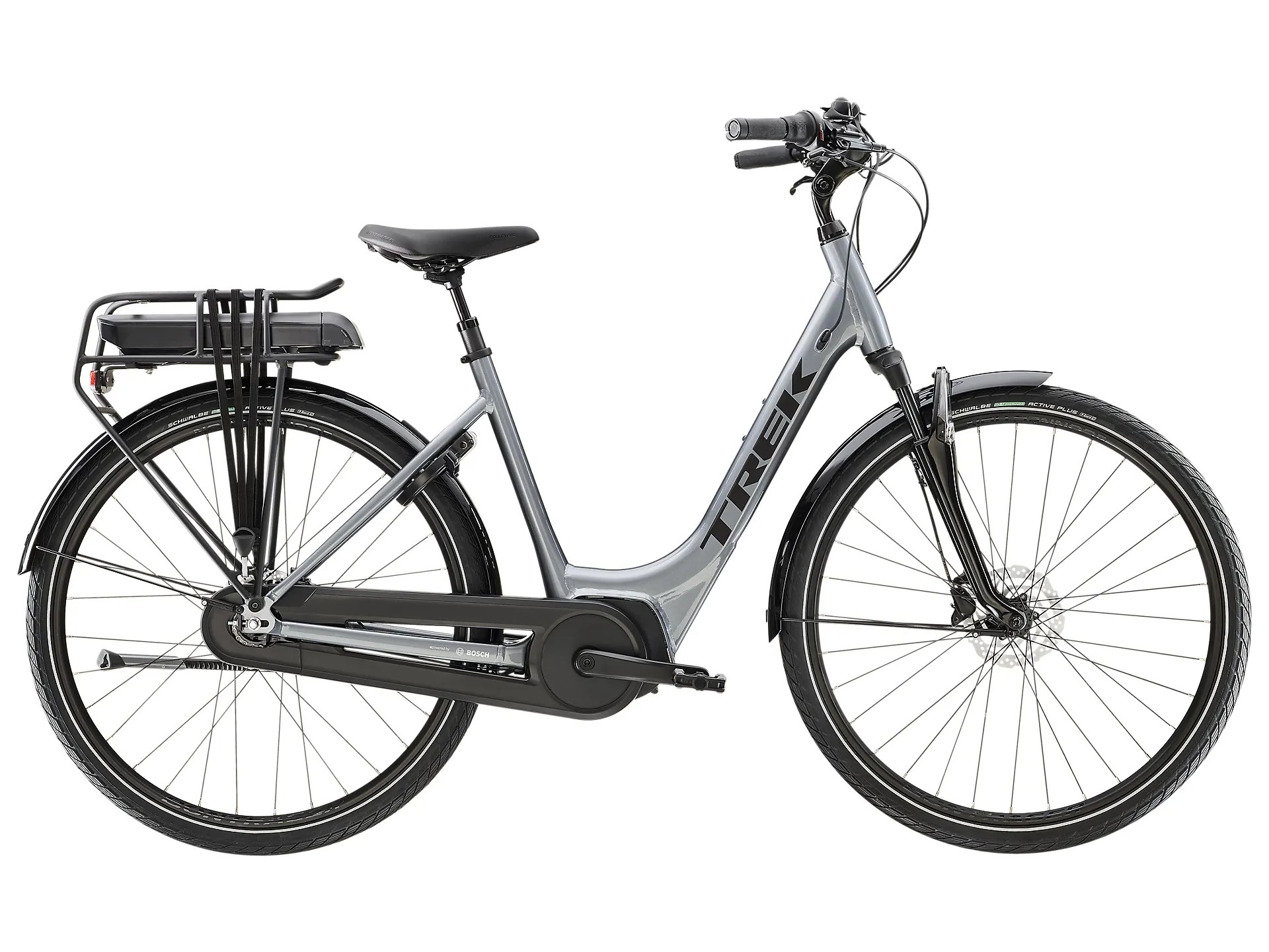 Trek District+ 2 Lowstep 500WH Electric Hybrid Bike is a comfortable, dependable electric bike built to make getting around your city simple, fast and fun. It has low-maintenance internal gearing, a powerful Bosch Active Line Plus motor and hydraulic disc brakes for added stopping power. Plus, it comes with road-smoothing suspension and all the utility features you need for daily rides, like mudguards, Daytime Running Lights and a rear rack.