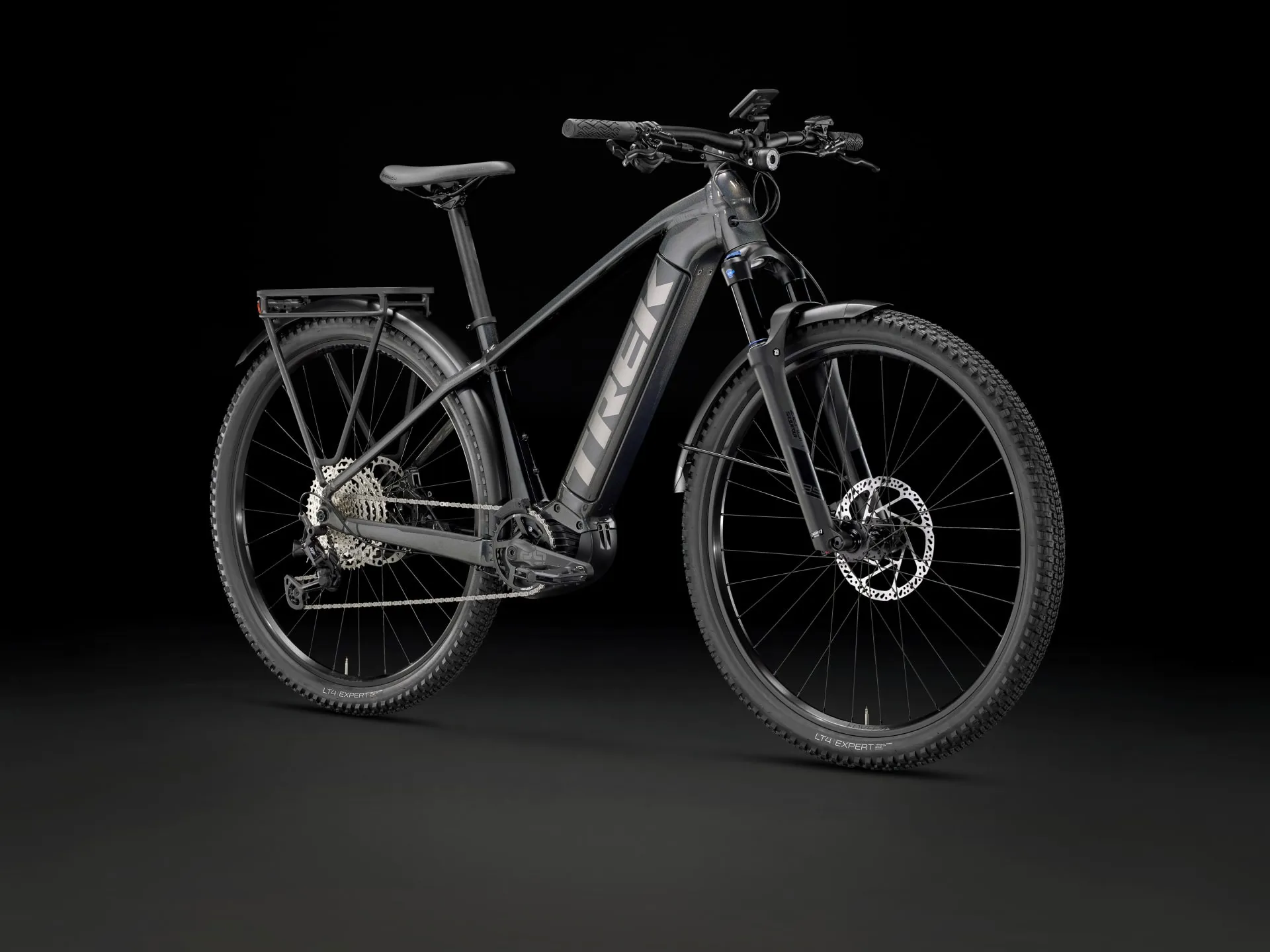 A durable aluminium frame that fully encases a long-range 625 Wh battery for sleek looks and protection on the trail, a Bosch Performance Line CX (250 W, 85 Nm) motor that assists up to 20 mph (25 km/h in Europe), a Bosch Intuvia controller, a 12-speed Shimano drivetrain and an SR Suntour suspension fork with lockout. Plus, it comes equipped with mudguards, a rear rack and front and rear lights powered by the bike's battery.