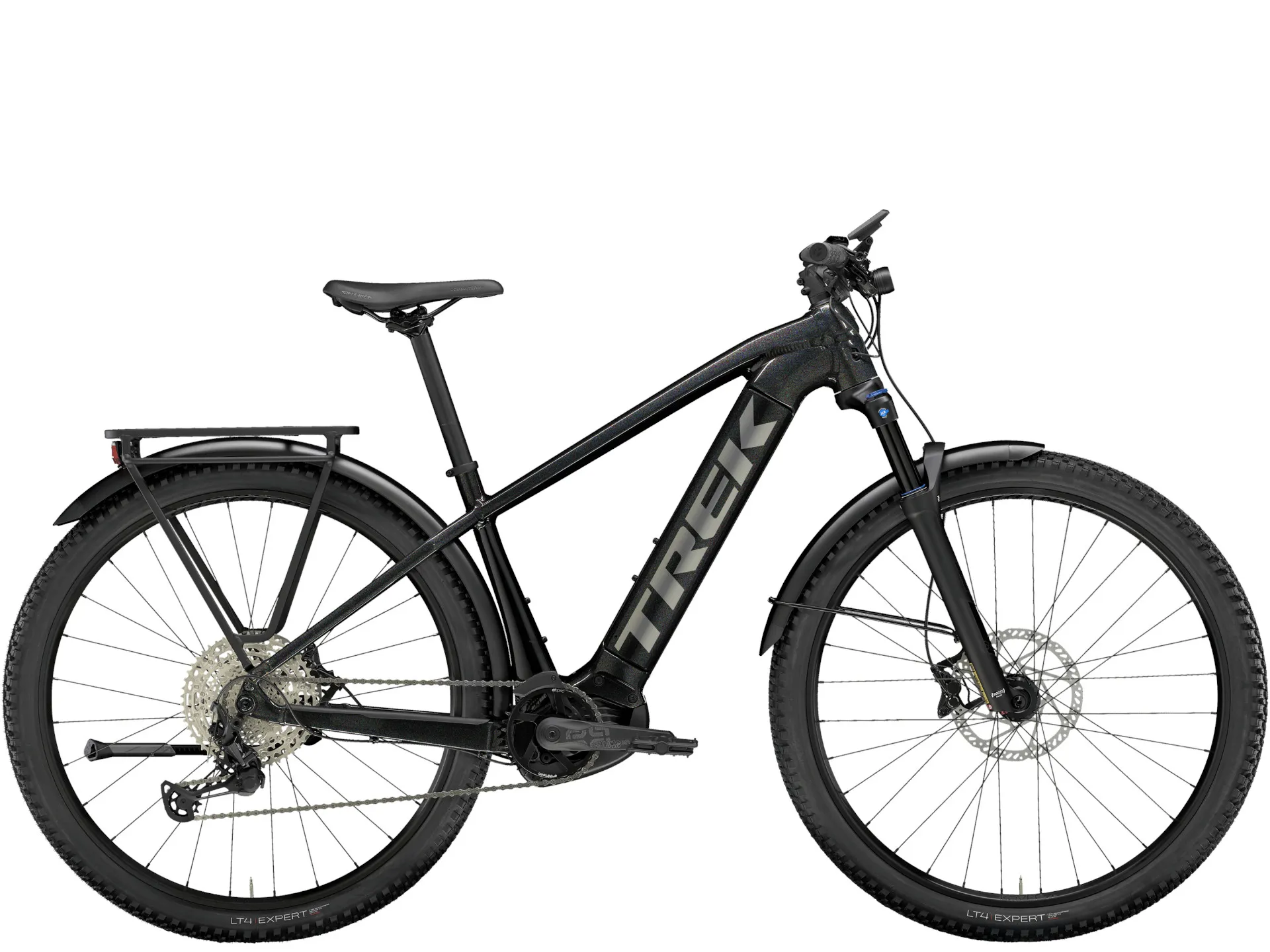 The Trek Powerfly Sport 5 Equipped Electric Bike takes our do-everything electric mountain bike and ups the utility with everything you need for rugged daily commutes and singletrack exploration. It's built with sturdy parts and features a powerful Bosch motor with our user-friendly Removable Integrated Battery (RIB) system. Commute-ready accessories, like mudguards, a rear rack and front and rear lights that are powered by the e-MTB system, make this ride ready for anything.