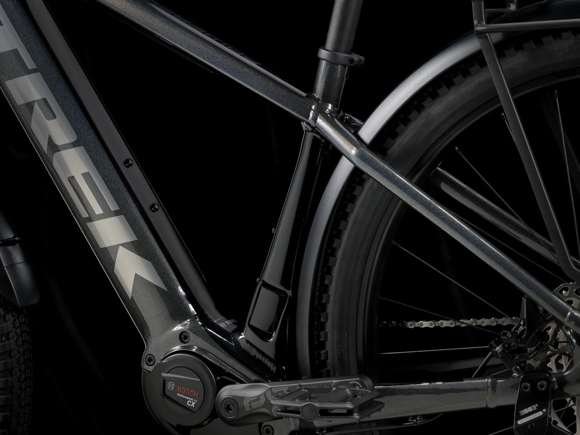 • Trek's Removable Integrated Battery (RIB) system looks great and is super user-friendly: it fully hides the battery in the frame for protection, makes it easy remove the battery without tools and lets you mount a water bottle cage