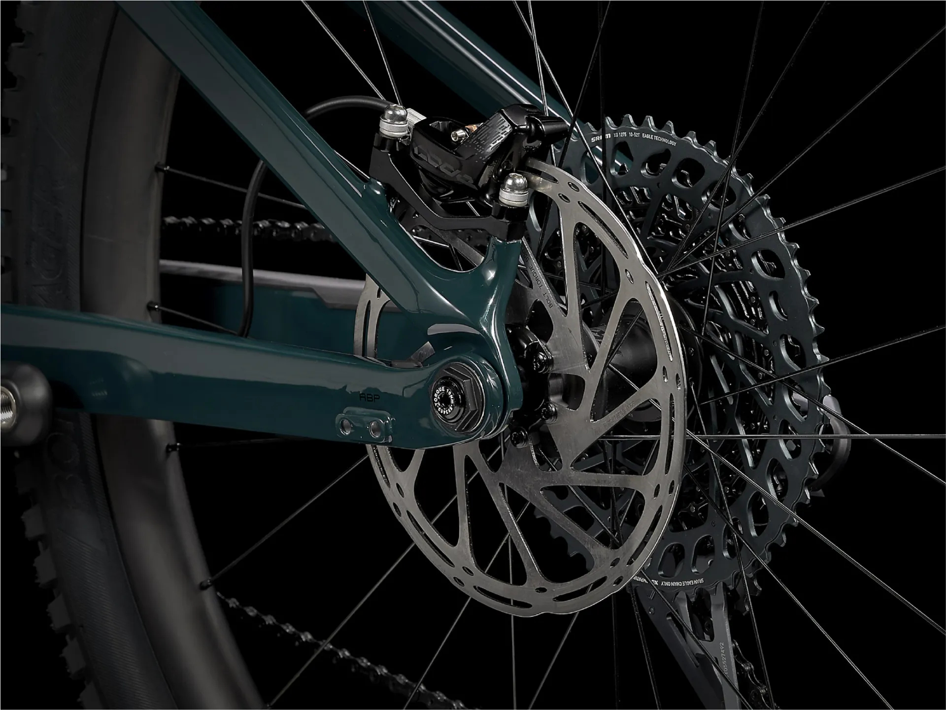 Frame OCLV Mountain Carbon main frame & stays, Removable Integrated Battery (RIB), tapered head tube, Knock Block, Control Freak internal routing, magnesium rocker link, Motor Armor, Mino Link, ABP, Boost148, 12mm thru axle, 150mm travel