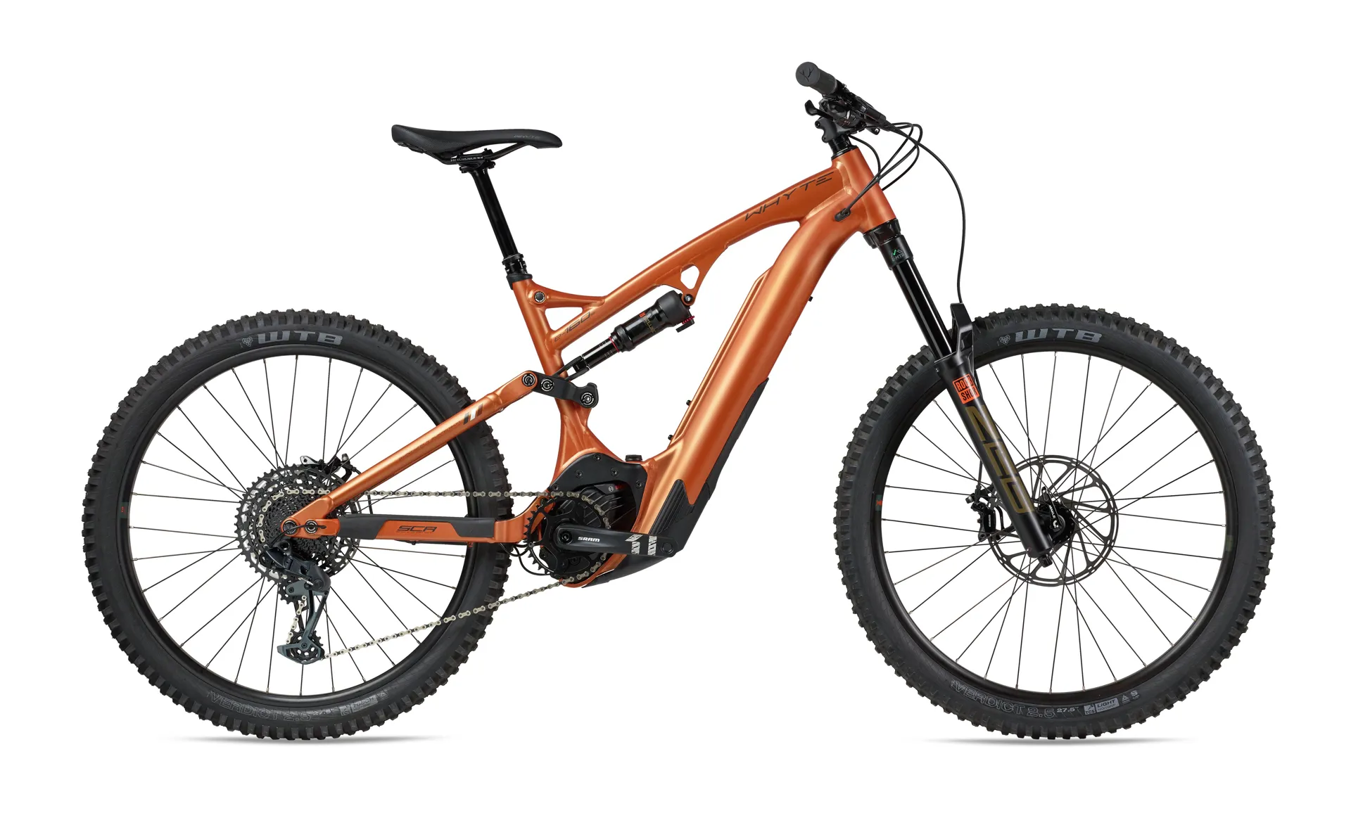 The Whyte E-160 S Electric Mountain Bike uses the new RockShox ZEB 38mm stanchioned forks which perfectly complement our proprietary OTO geometry for maximum steering control.