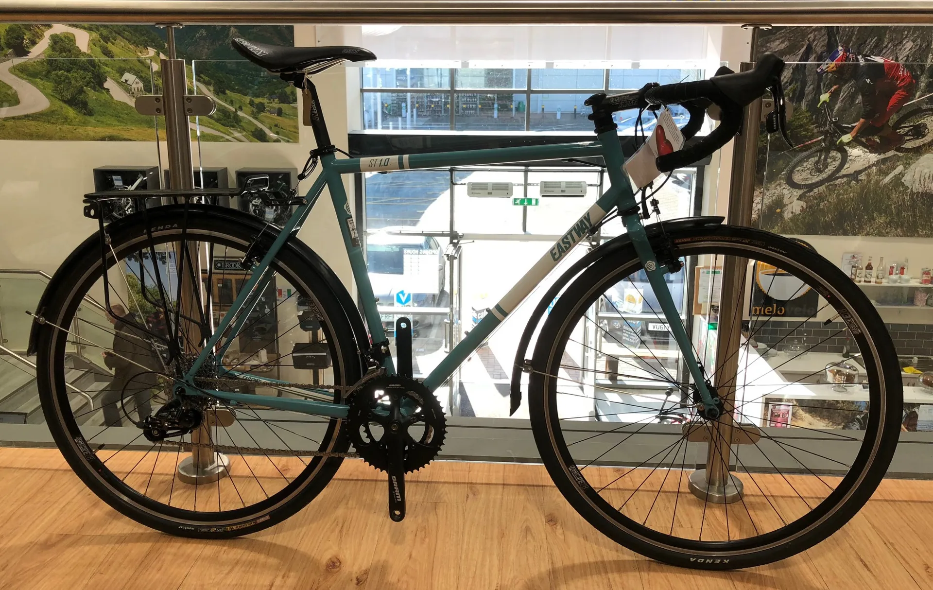 The Eastway ST1.0 Road Bike 2014 proves that a little extra bulk doesn't impact riding enjoyment. The ST1.0 is the perfect year round beater bike, delivering a compliant and stiff ride that's at home on tarmac & gravel. Features a Shimano Apex 2x9 speed groupset, Eastway E28 wheelset & Eastway cockpit. Fitted with front & rear mudguards.
