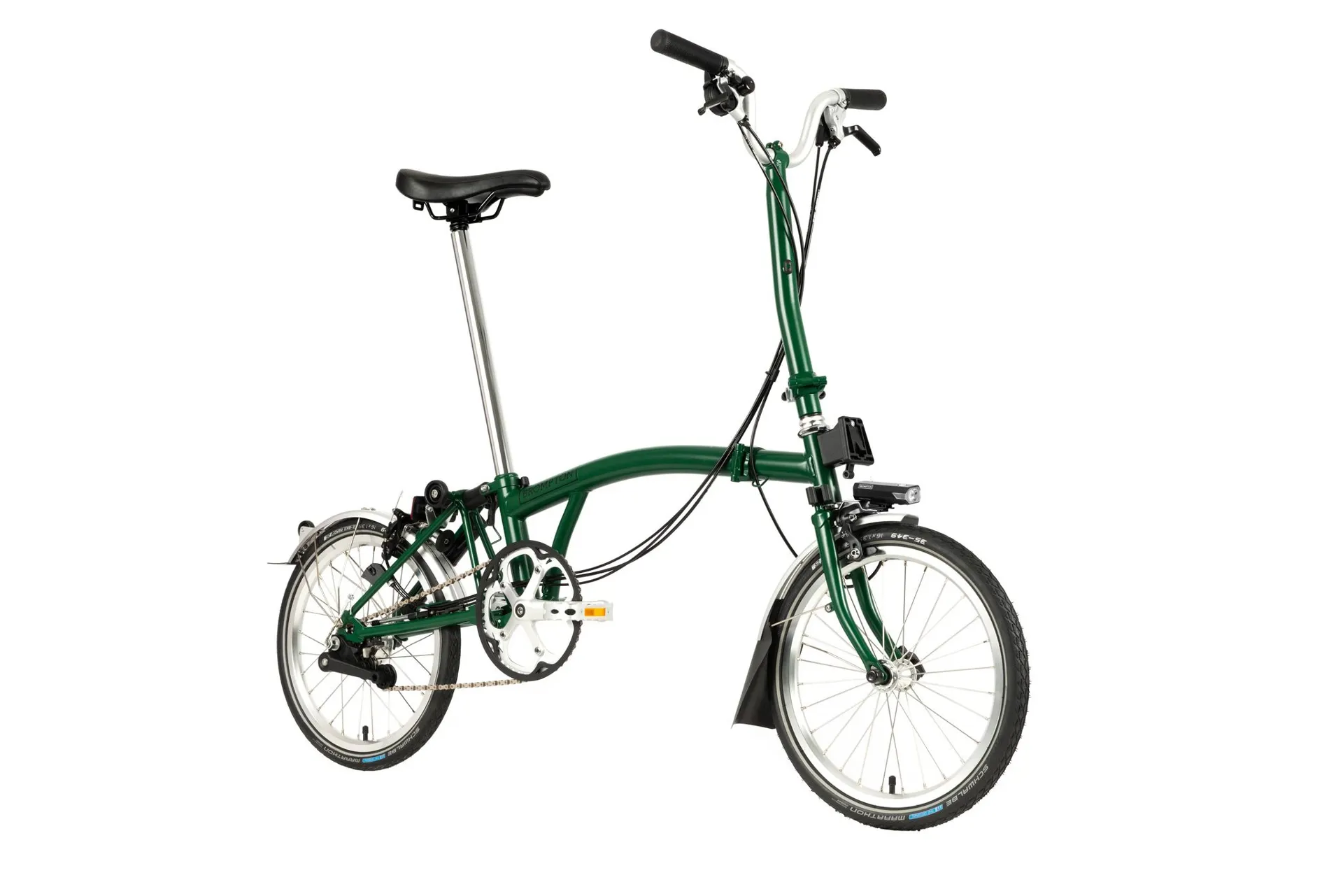 Saddle: Brompton saddle, integrated carry handle, mounts for Brompton rear light and saddle bag