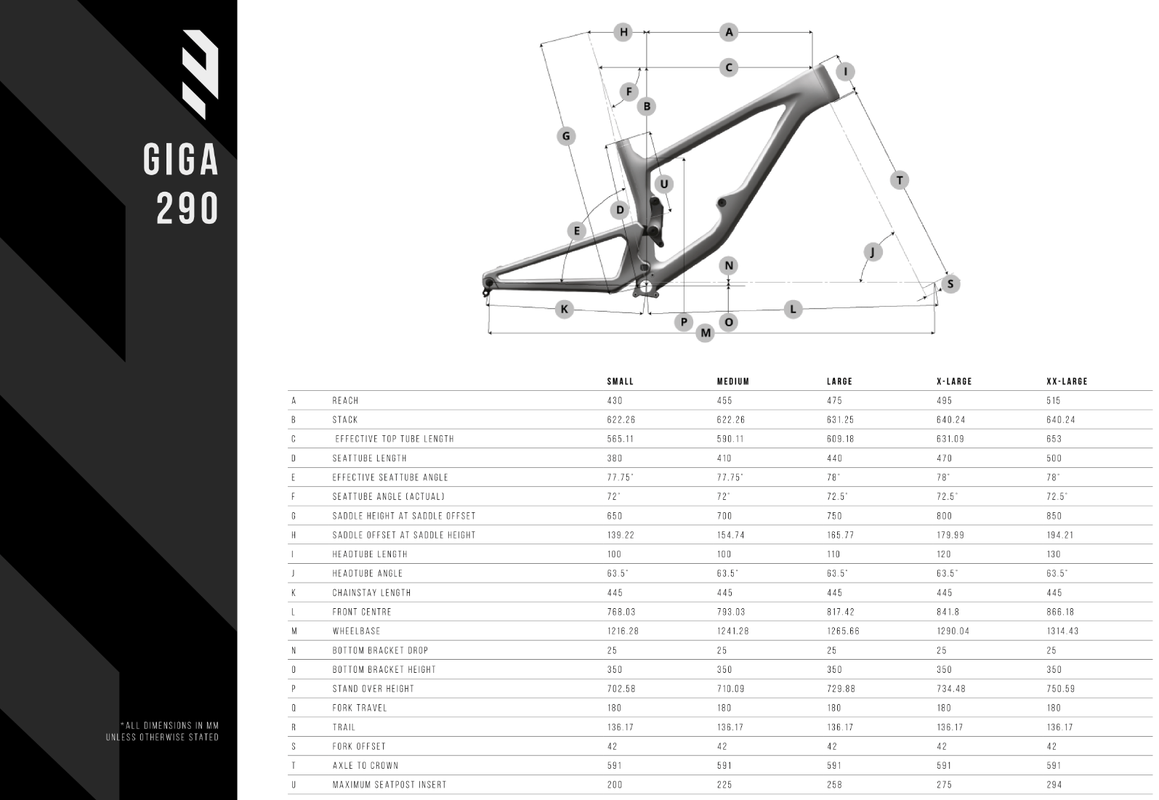 Available in 5 sizes (Small to XXL) in either 27.5” or 29” wheel size, there is the perfect fit foreveryone. The frame geometry is Long, Low, Slack and Steep as it is based around our saddle offsetprinciple, which ensures the seated riding position is tailored across all sizes, with steeper seat angleson bigger frames. The Seat tube is also designed for maximum seat post insertion to allow maximum drop.
