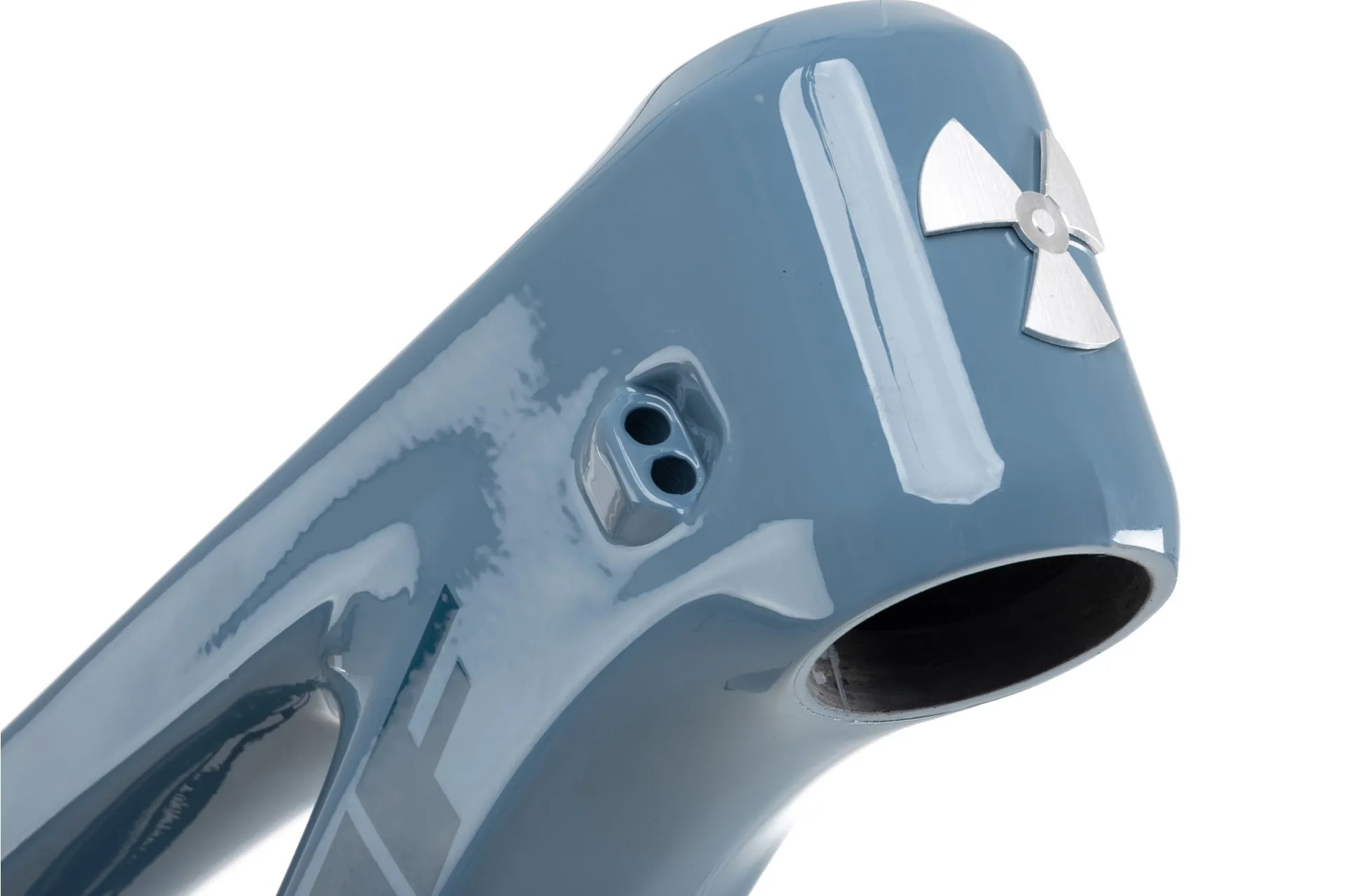 The suspension platform is basedon thesame horseshoe driven linkageas our award-winningDissent downhill frame, albeit now with a 2-stage main pivot flip chip. Using an eccentric axle system,riders canalter the Kinematic progressivity;sothe bike can be tailored to suit the conditionson thetrail with only an 8mmallenkey.