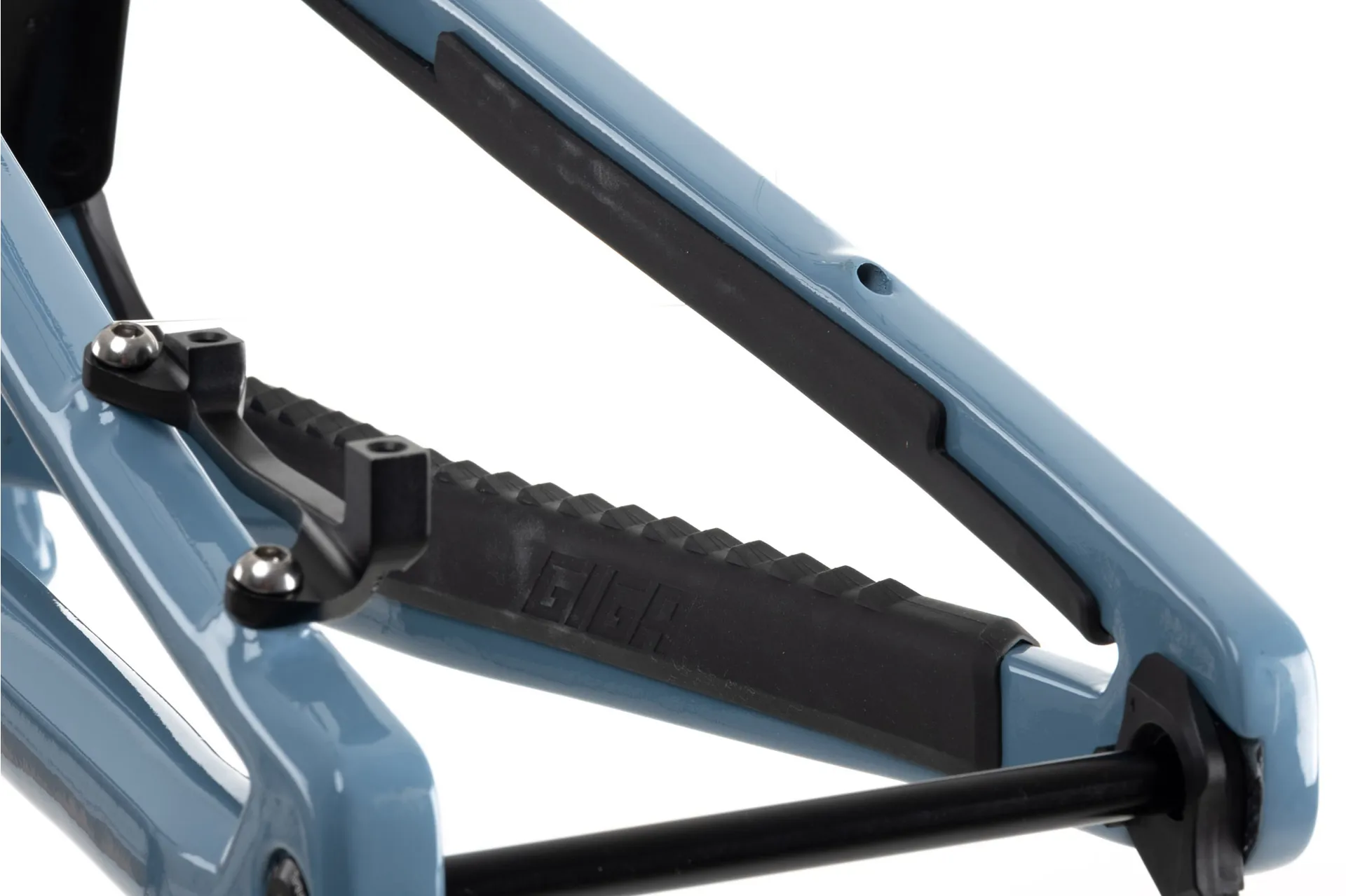 The Giga is also sculptured to fit a 750ml water bottle(carbon bottle cage included) as well as anaccessory mount under the top tube for emergency trail tools. All models also feature an integratedrear mud guard and plenty of clearance for up to 2.5” tyres. The frames feature a clear paint protection kit as standard with 3D contoured rubber downtube, seat and chain stay protection.
