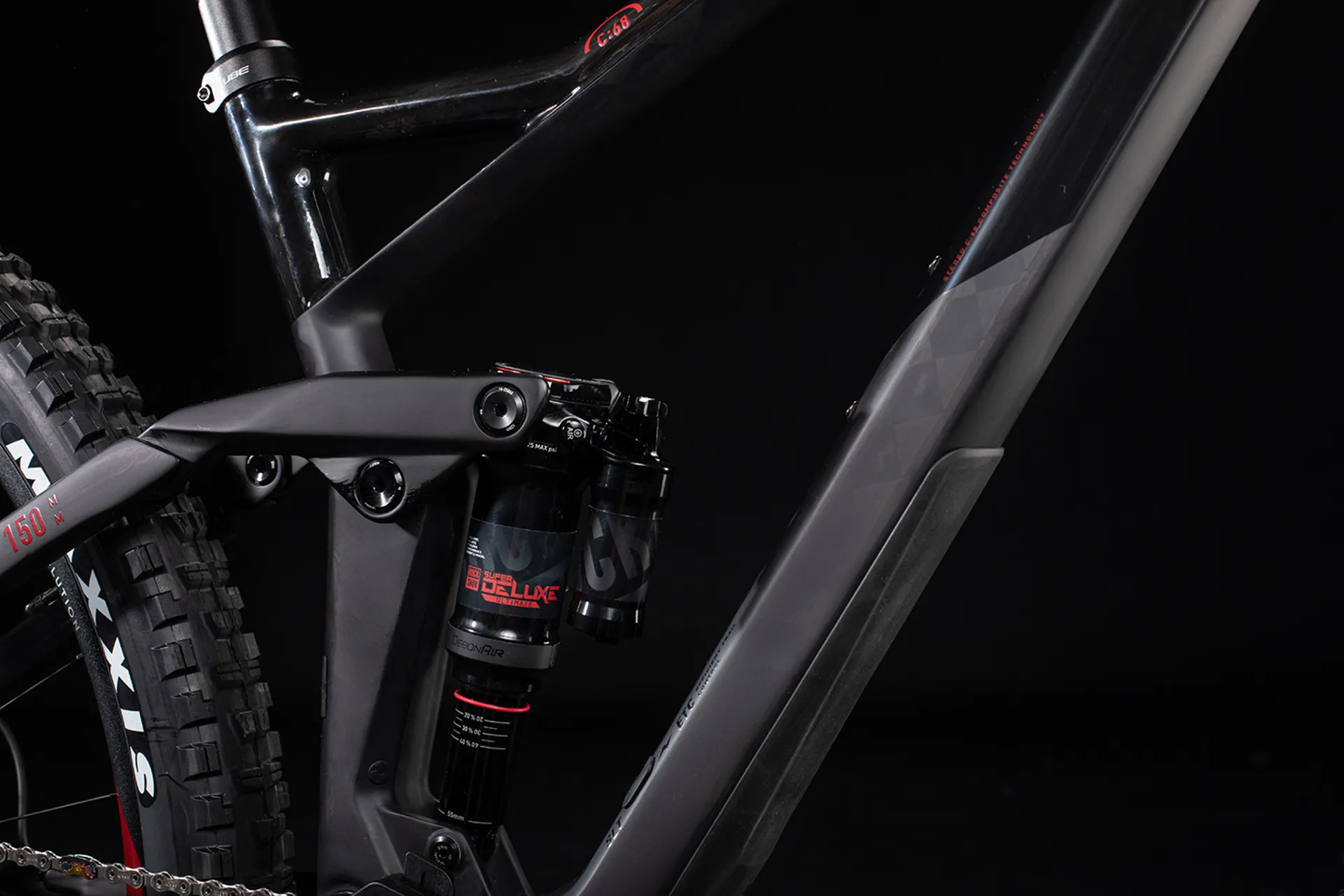 How do you combine mountain goat agility with mountain lion speed? A good start is to ask the CUBE engineers to do the seemingly impossible and build a bike that climbs almost as well as it descends. The result is the Stereo 150 29's elegantly sculpted C:68 carbon frame. The clean lines, rocker cover and trunnion-mount shock are designed to combine efficiency, stability and intuitive handling. Boost 148 rear axle spacing works together with the tapered head tube and oversized down tube to deliver unparalleled steering precision and pedal input. ISCG05 tabs for a chain guide are standard, while short chain stays ensure agile handling and, in combination with the 75.5-degree seat tube, provide efficient climbing. The low standover and head tube specifically designed for a 160mm fork add the confidence, control and precision you need for sure-footed descending. Jack of all trades? We prefer to think it's a master of them all.