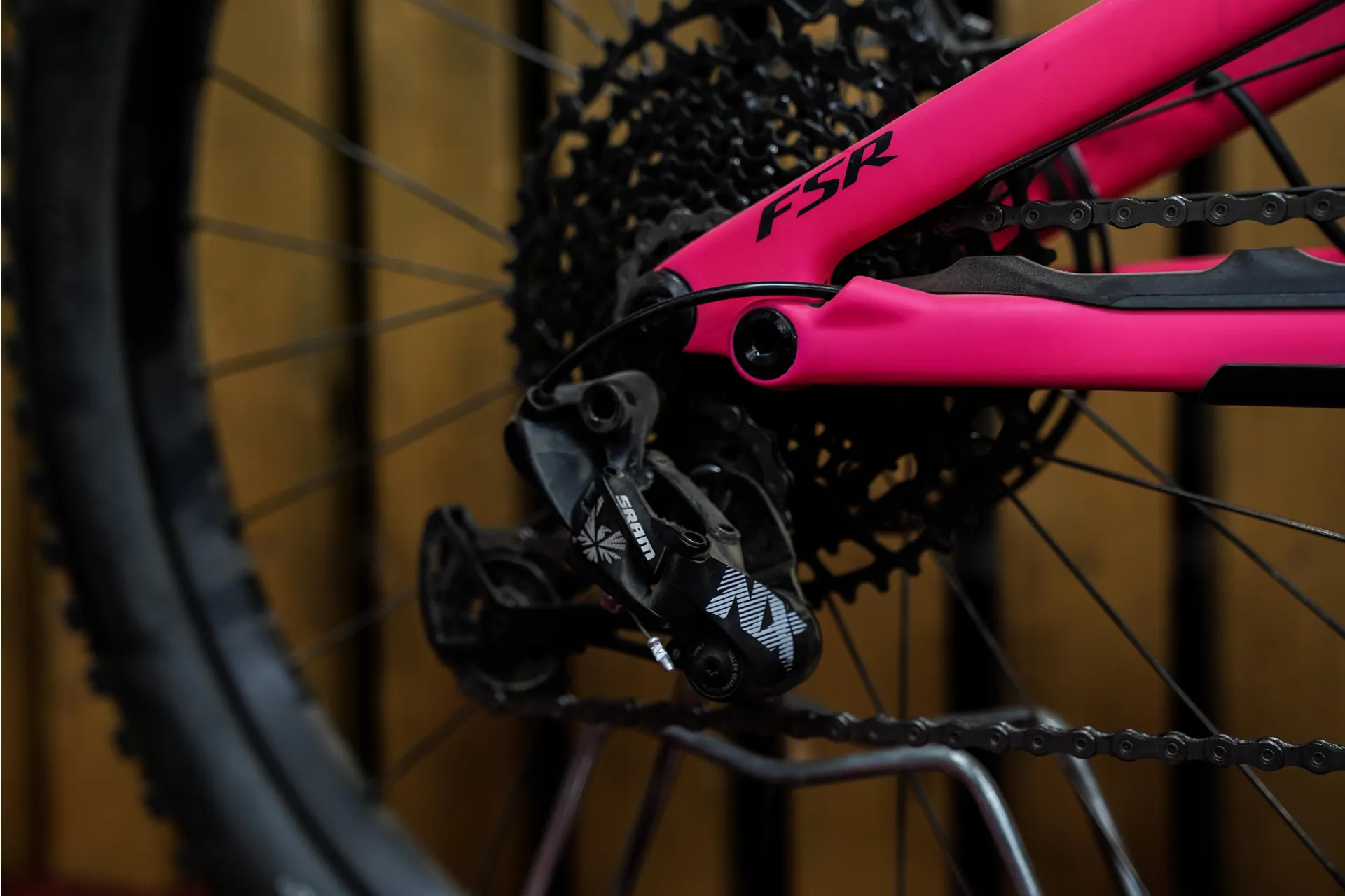 designing the frame with the stiffness targets being a main goal, Specialized developed a radical new sidearm design. The front-end and rear-end are connected at three points, and the sidearm helps keep all these points super stiff and connected, all while taking about 100 grams out of the rear-end. More explicitly, this minimizes frame flex when the rear suspension is active.